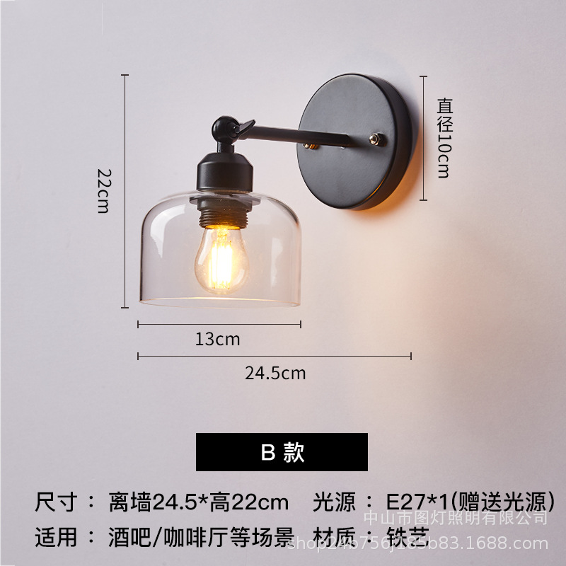 북유럽 현대 미니멀 유리 라운드 벽 램프 단일 헤드 크리 에이 티브 레스토랑 호텔 바 램프 마스터 침실 머리맡 벽 램프스토어 가기