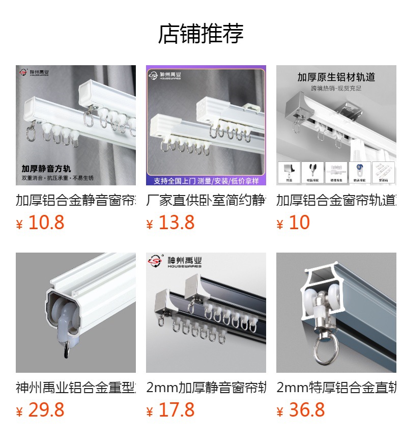名称:加厚1.5mm静音铝合金单双轨卧室窗帘轨道滑轨导轨
