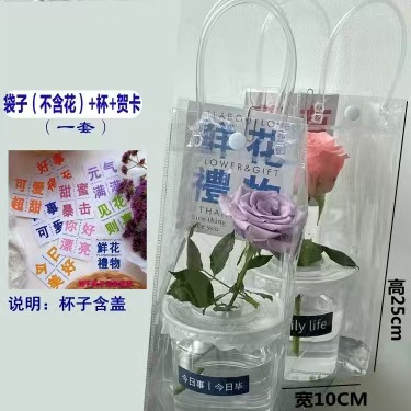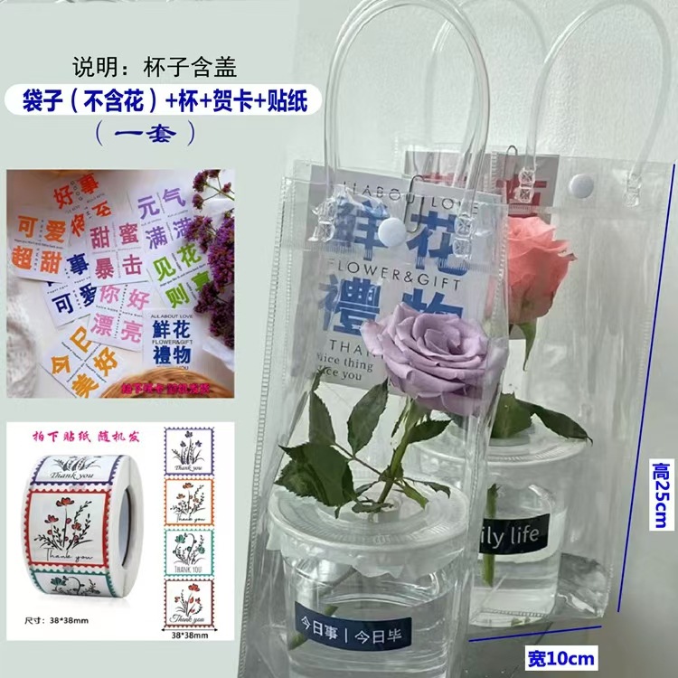 꽃 가방 마구간 발렌타인 데이 컵 꽃 동반자 선물 PVC 투명 핸드백 재고 도매