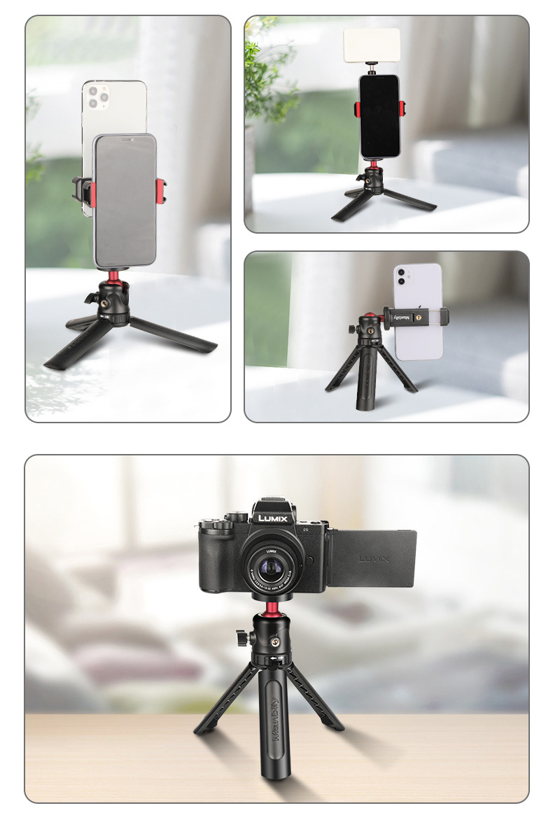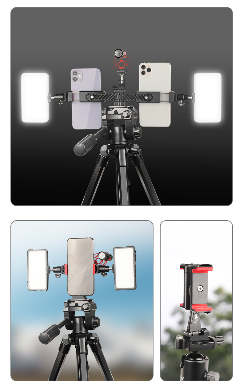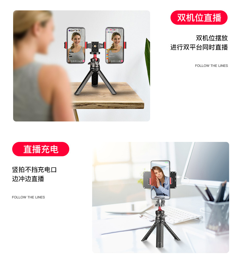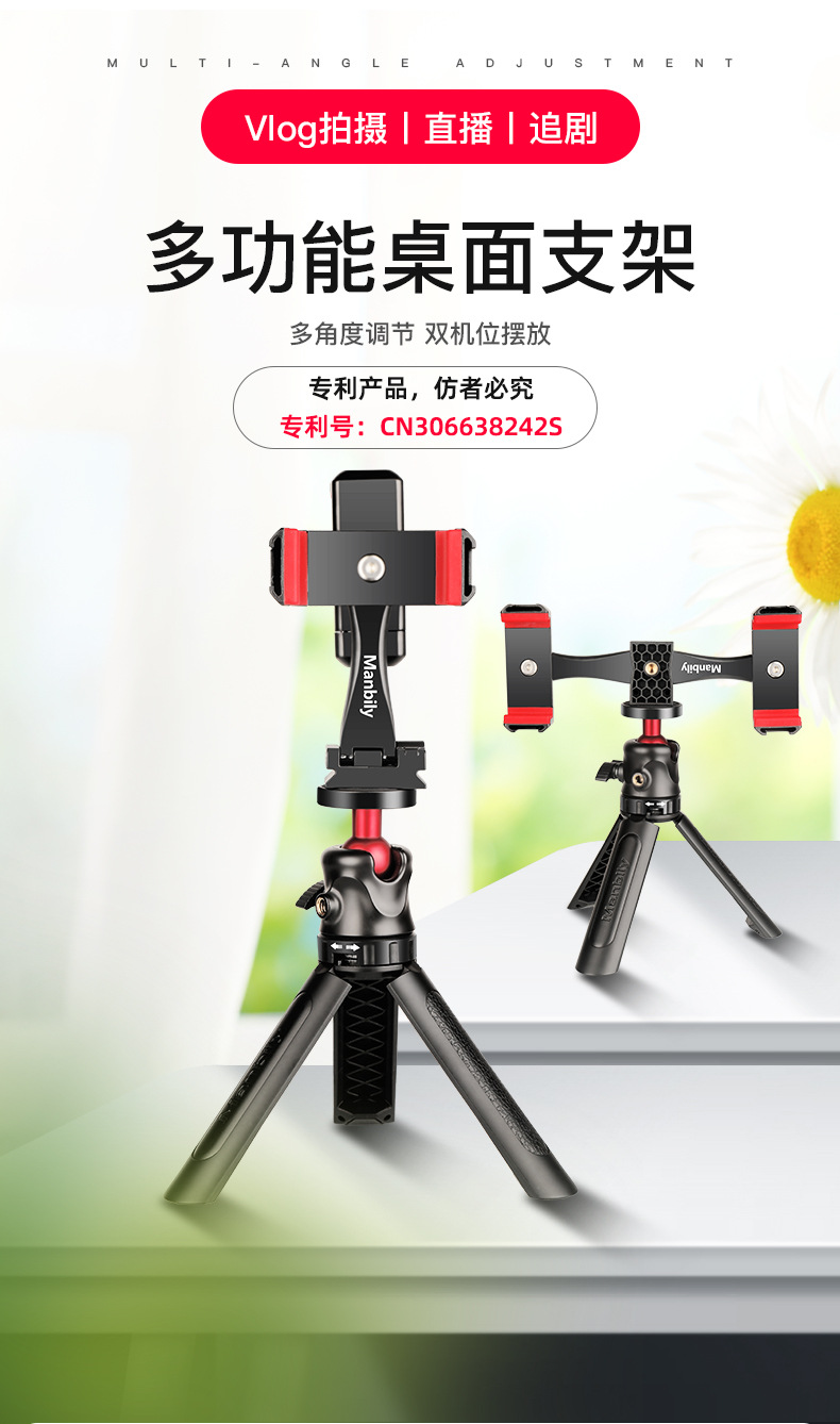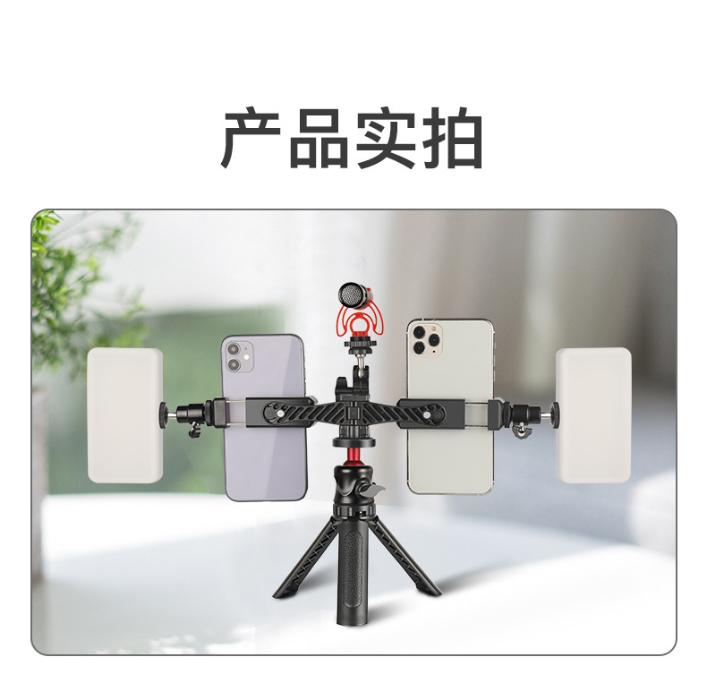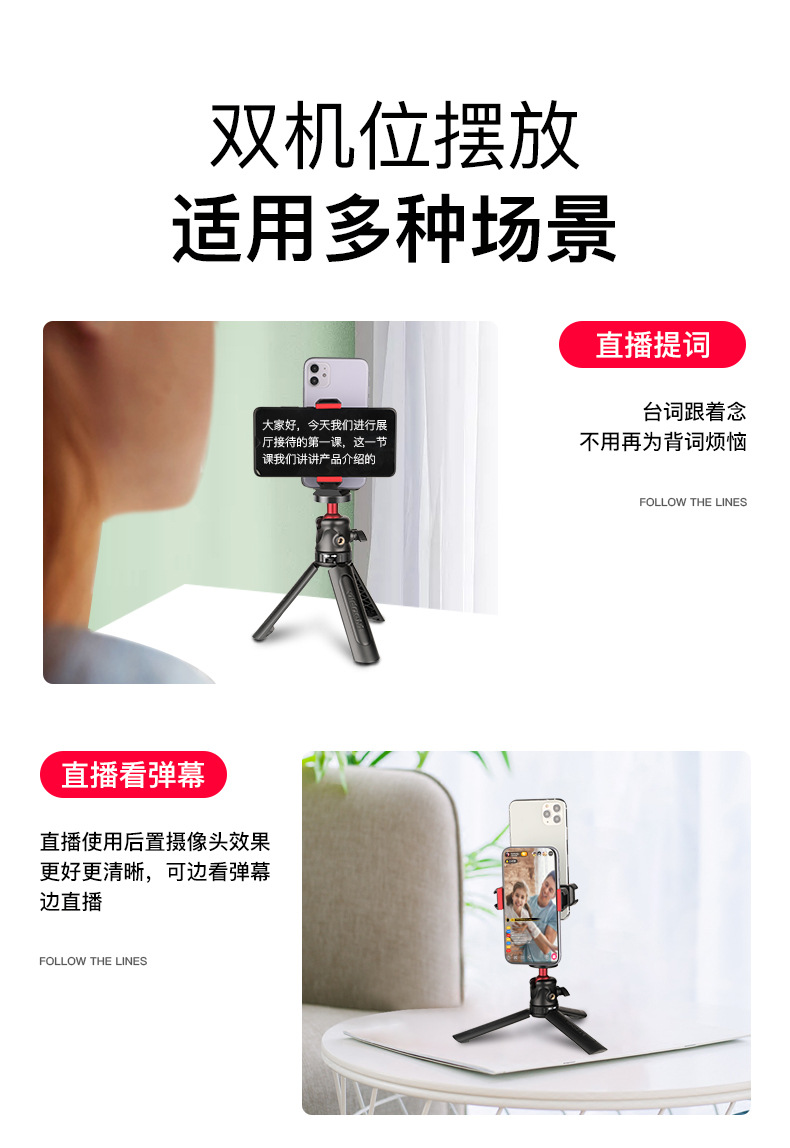 Mambili 데스크탑 삼각대 텔레 프롬프터 듀얼 폰 스탠드 녹화 촬영 재능 앵커 라이브 블로그