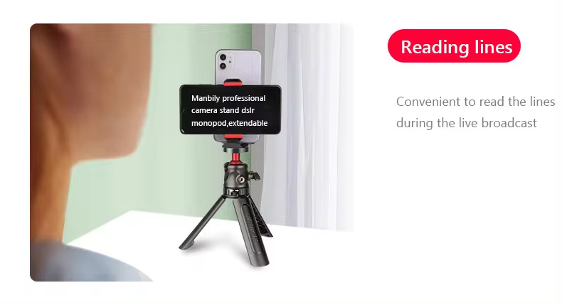 Mambili 데스크탑 삼각대 텔레 프롬프터 듀얼 폰 스탠드 녹화 촬영 재능 앵커 라이브 블로그스토어 가기