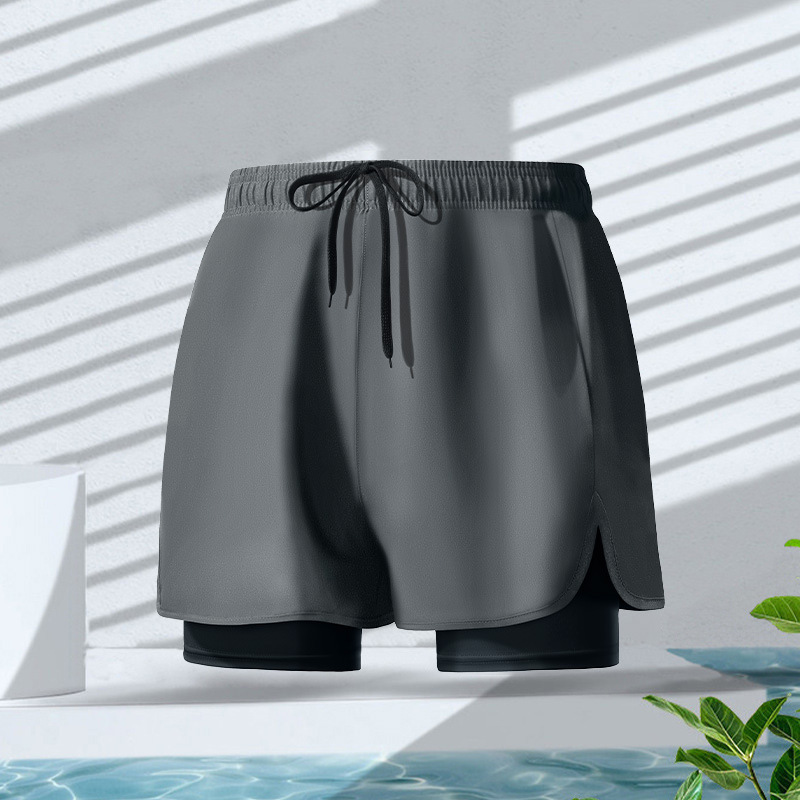 • 시장에 출시 된 더블 레이어 해변 수영 트렁크 [109 회색] 신제품