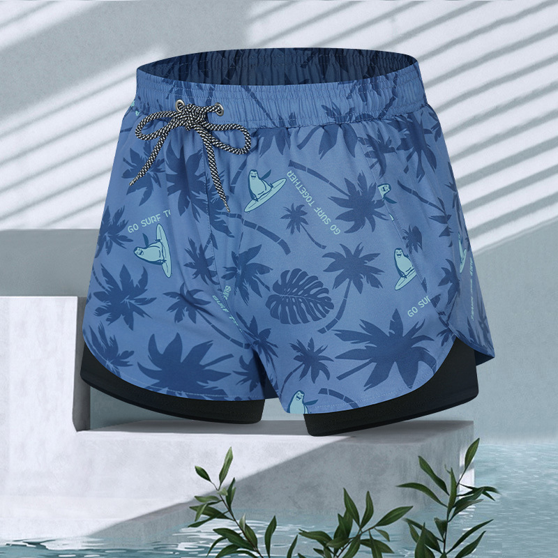 • 해변 수영 트렁크 A [더블 레이어 당황 방지] New