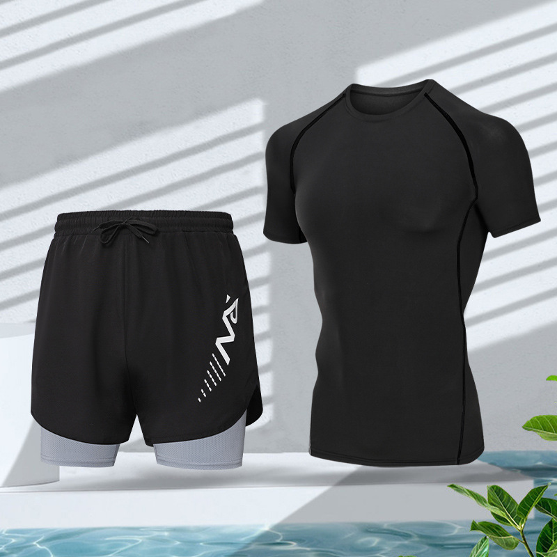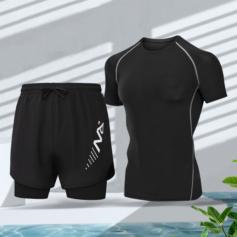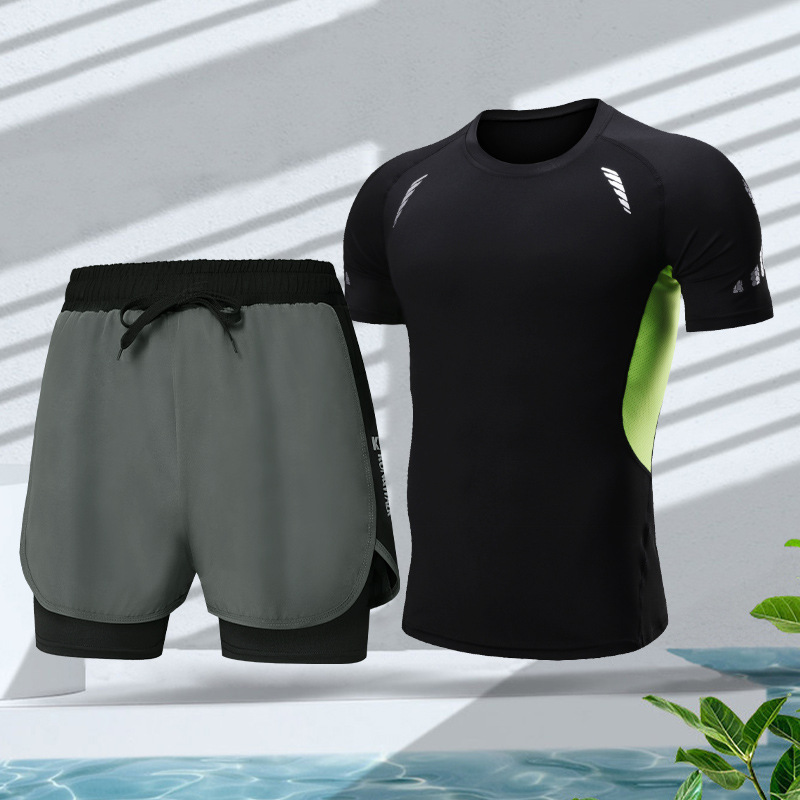 남성용 수영복, 이중 레이어 속건 수영복 세트, 온천용, 전문 수영용 이너웨어, 남성용 루즈핏 수영복, 해변용스토어 가기