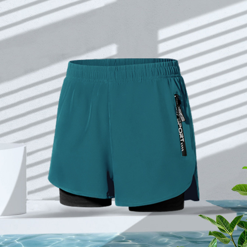 • 더블 레이어 비치 수영 트렁크 [특별 가격 104 블루] New