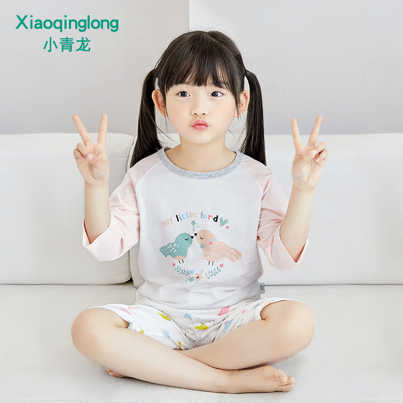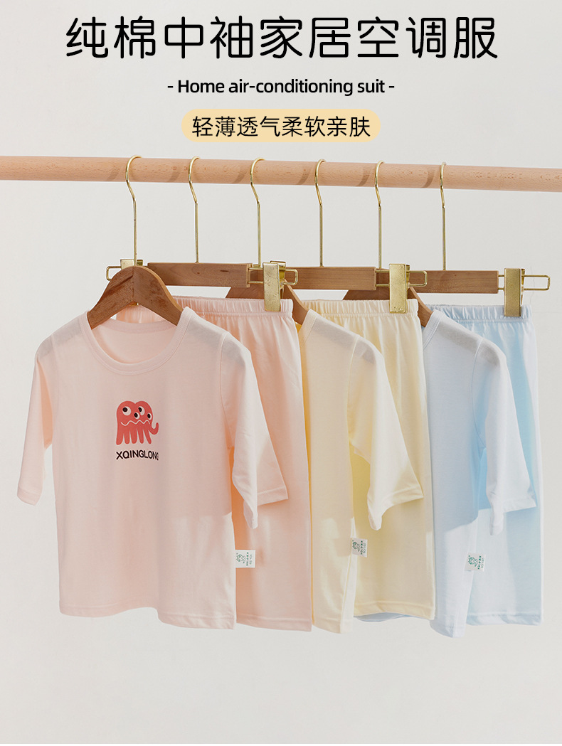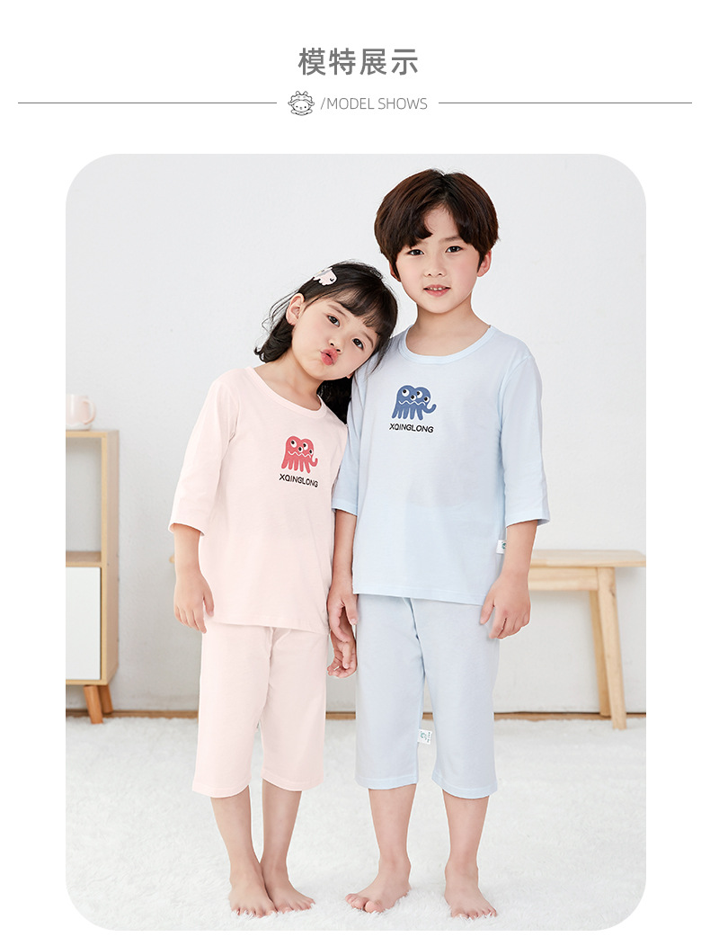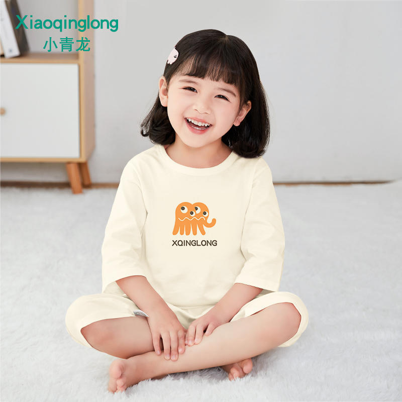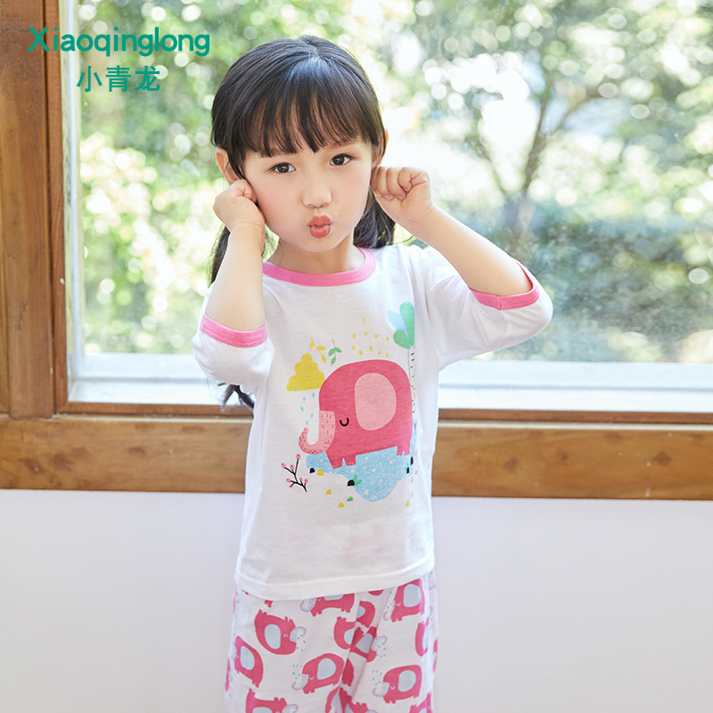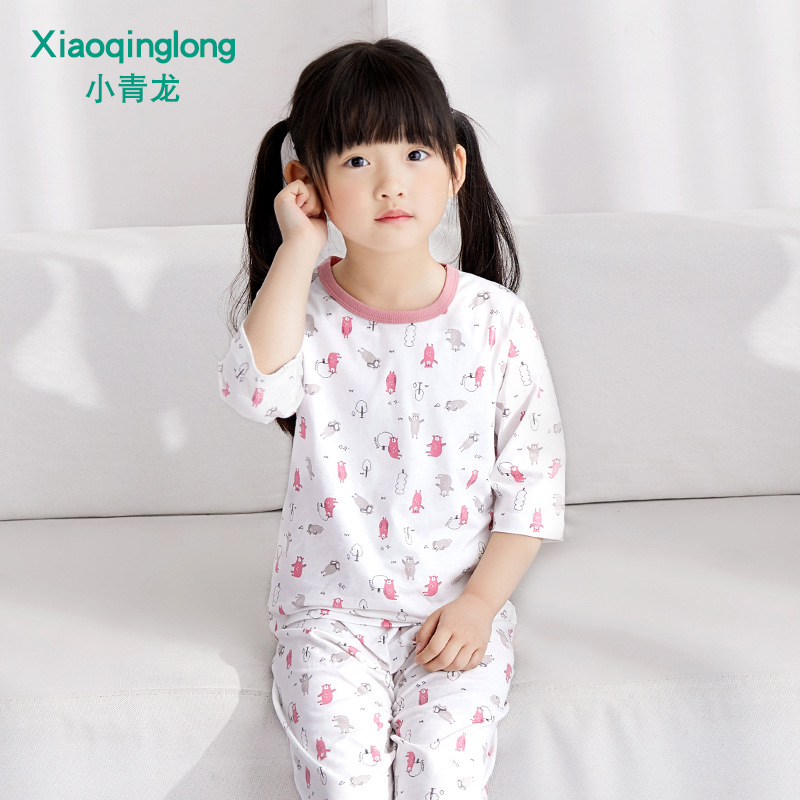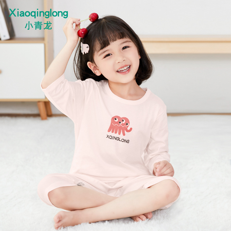 소년 소녀 아기 잠옷 중형 및 대형 어린이 중간 소매 바지 가정 의류 도매 용 리틀 Qinglong 어린이 에어컨 의류 면 얇은 잠옷