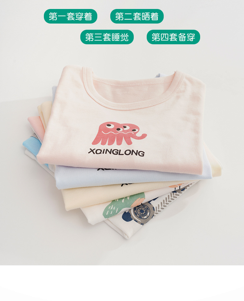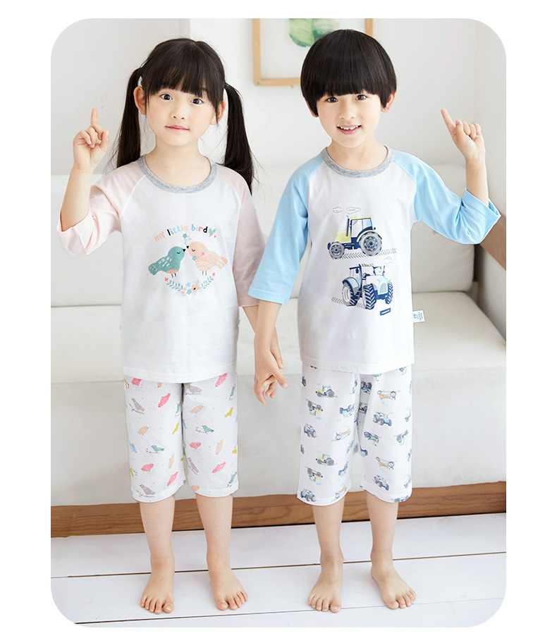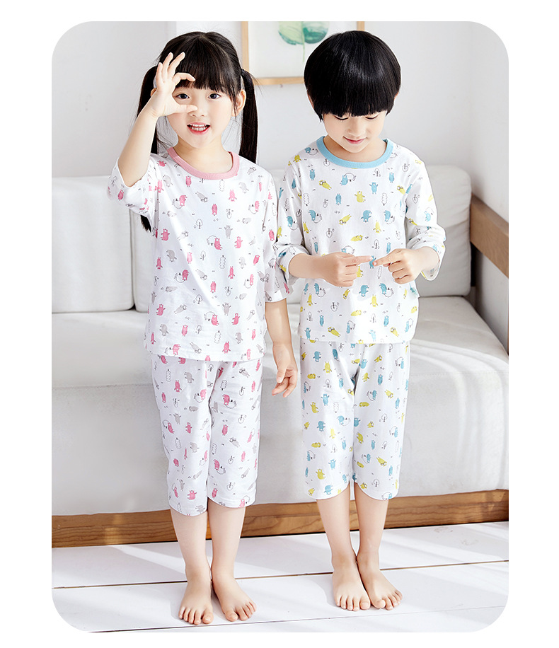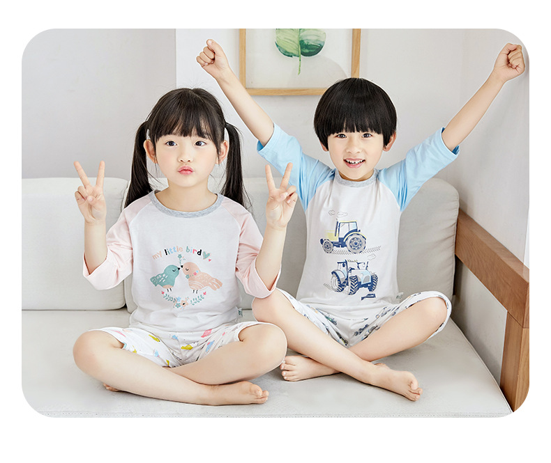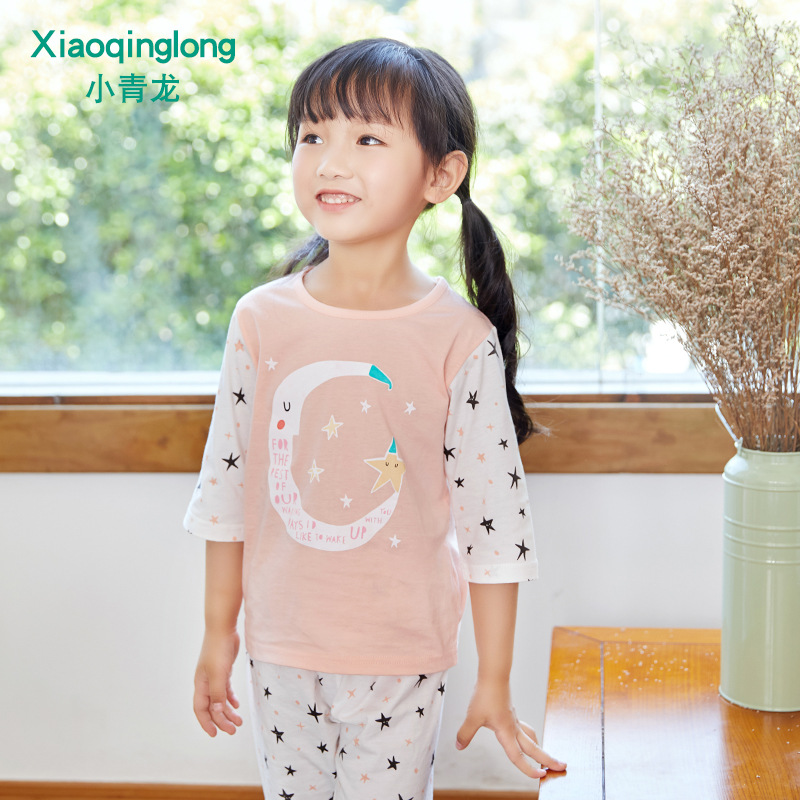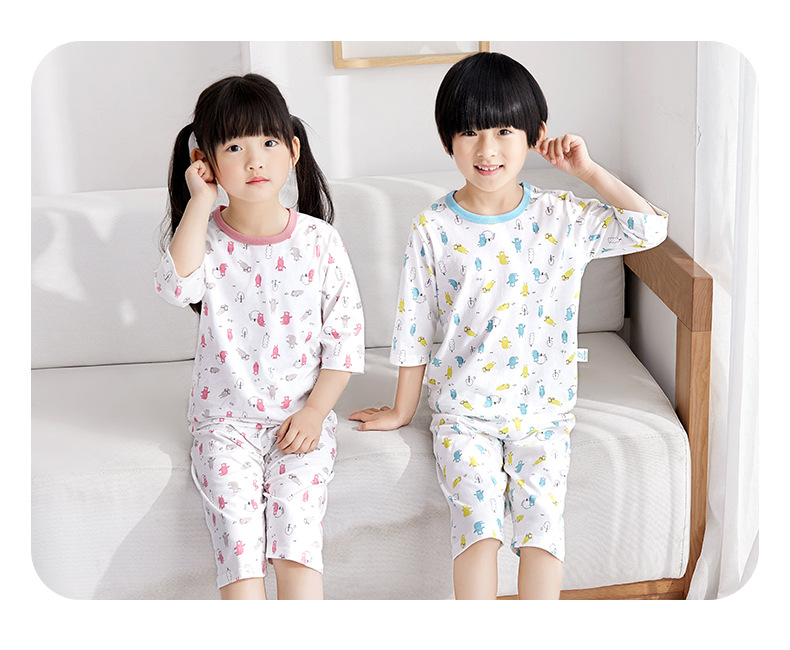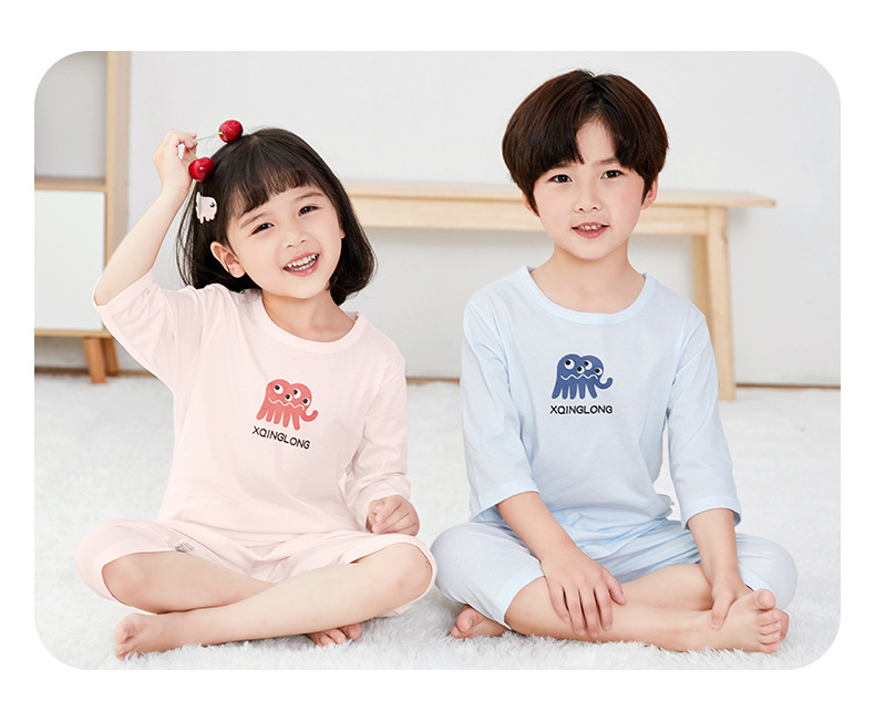 소년 소녀 아기 잠옷 중형 및 대형 어린이 중간 소매 바지 가정 의류 도매 용 리틀 Qinglong 어린이 에어컨 의류 면 얇은 잠옷
