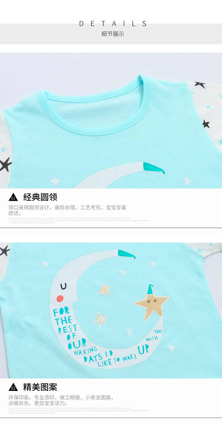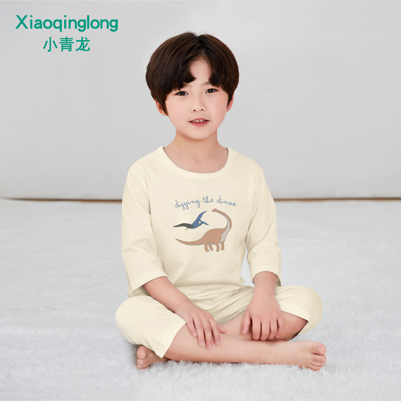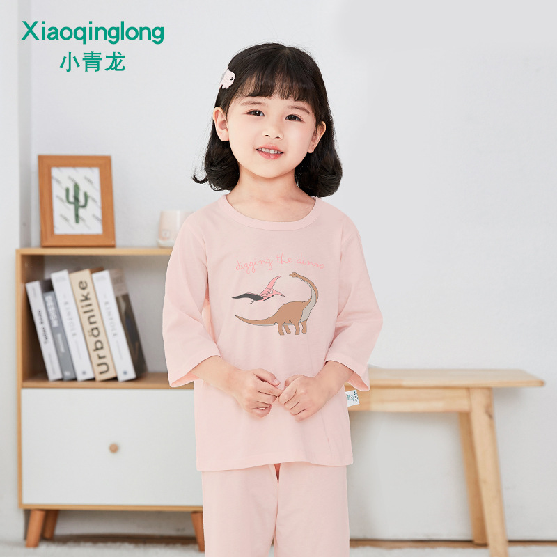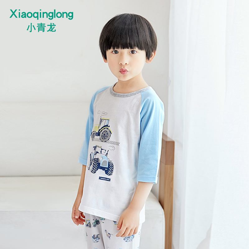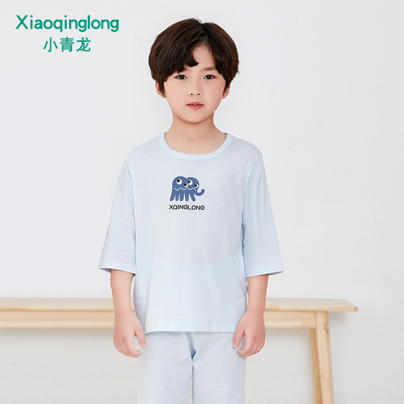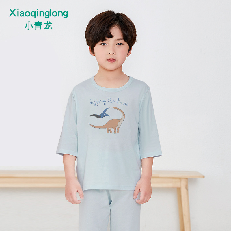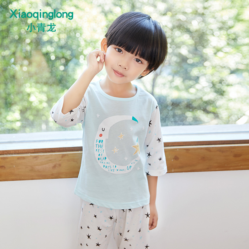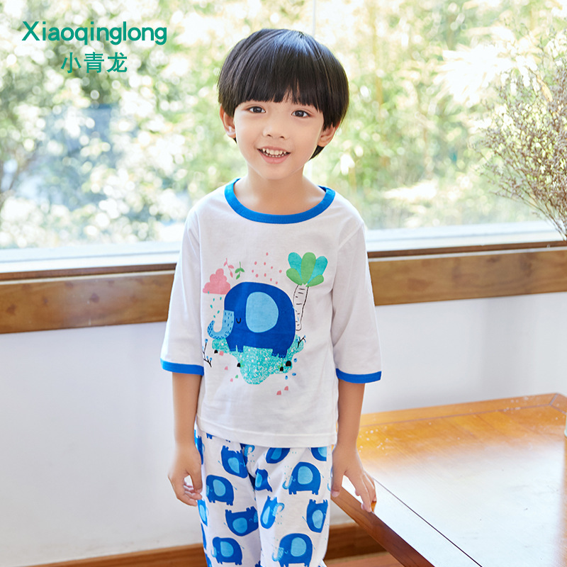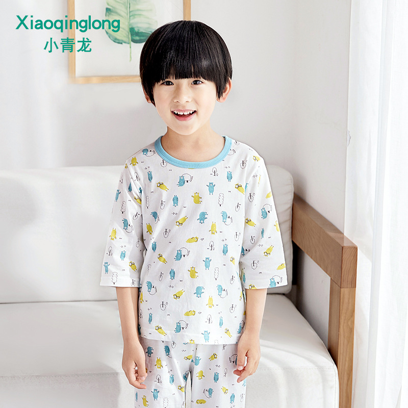 소년 소녀 아기 잠옷 중형 및 대형 어린이 중간 소매 바지 가정 의류 도매 용 리틀 Qinglong 어린이 에어컨 의류 면 얇은 잠옷스토어 가기