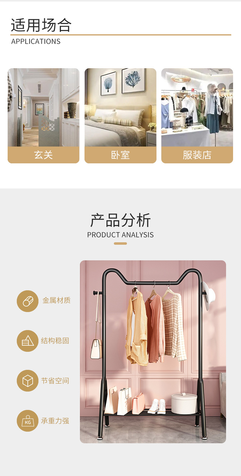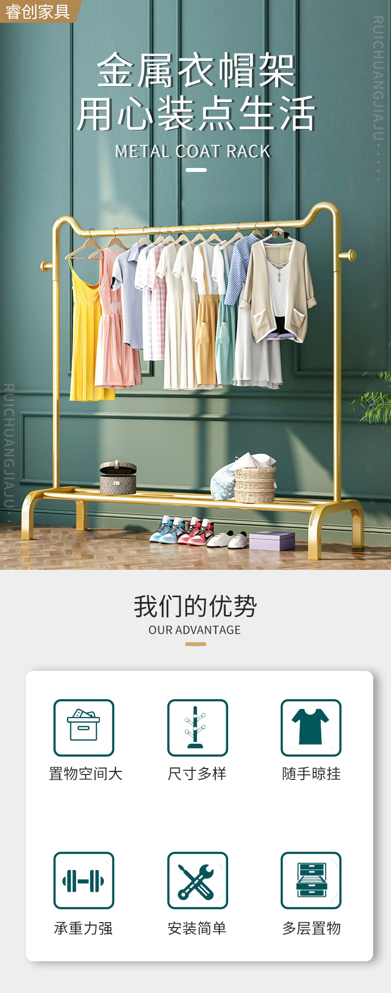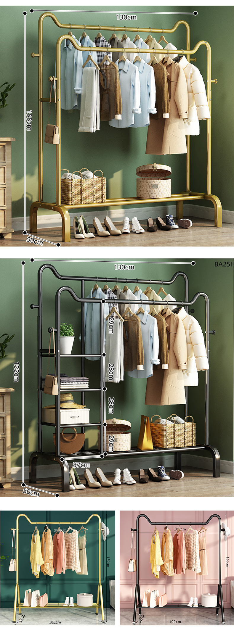 바닥 스탠딩 건조 랙 실내 심플 코트 랙 가정용 침실 걸이 두꺼운 이중 극 발코니 보관 랙스토어 가기