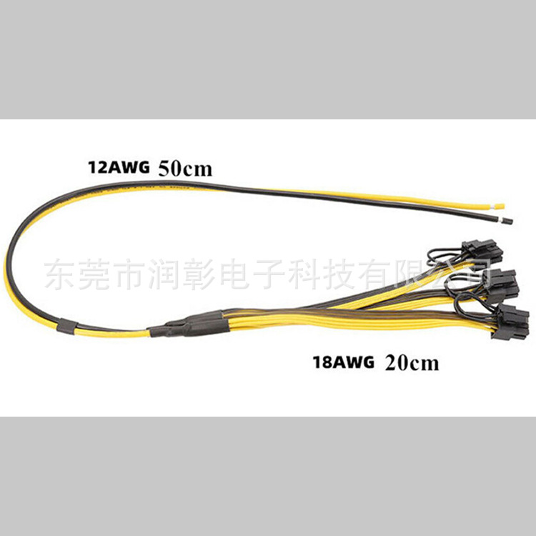 产品名称: 70cm 250母端 转3个6+2P显卡线  显卡线 12AWG+18AWG