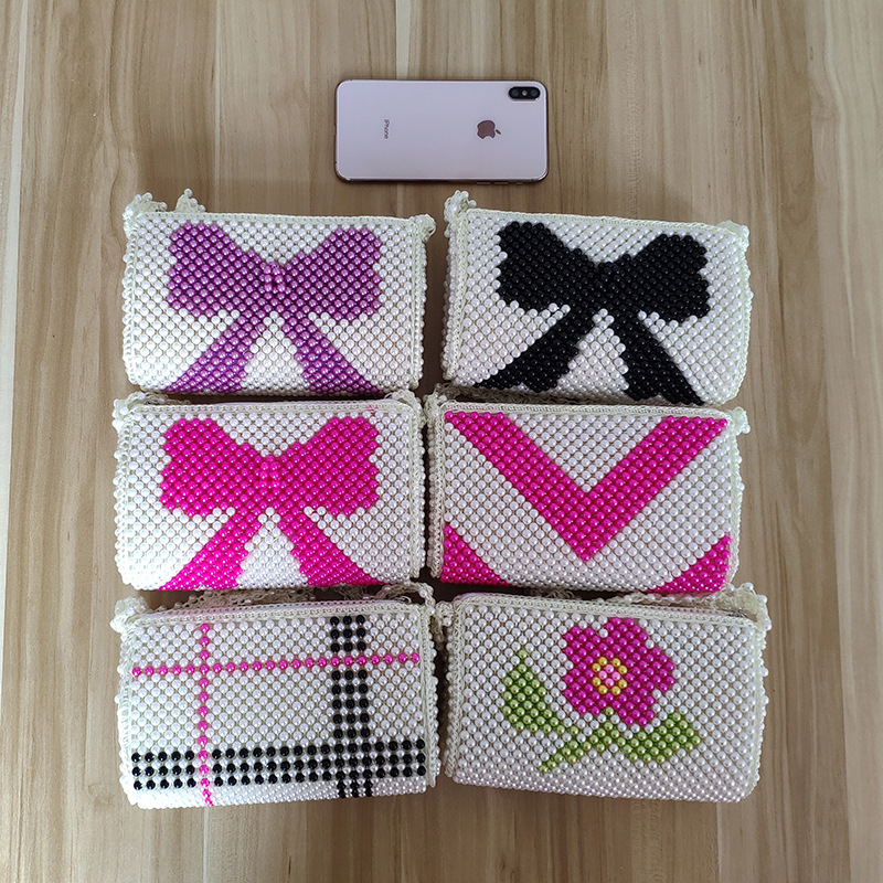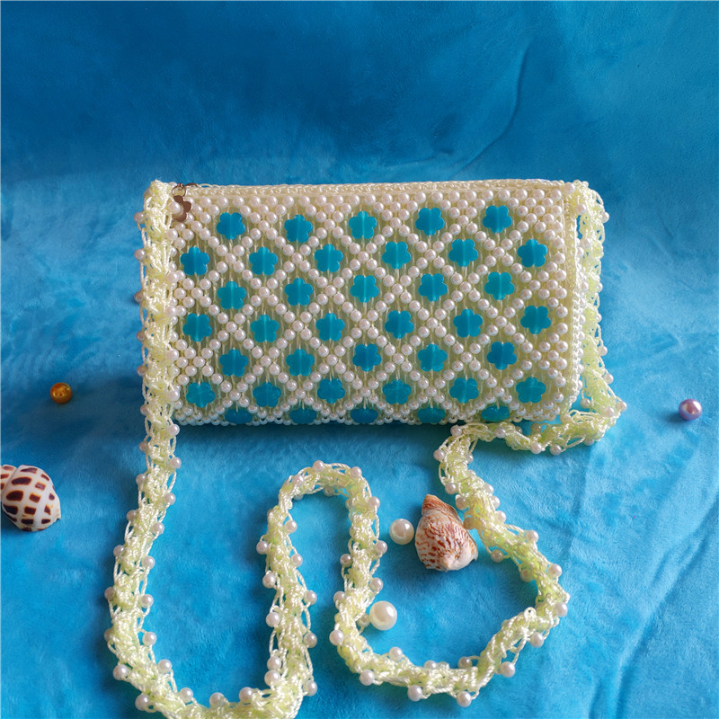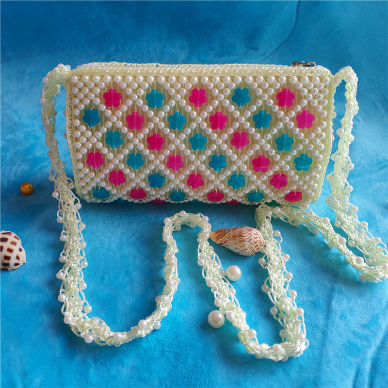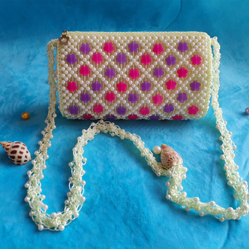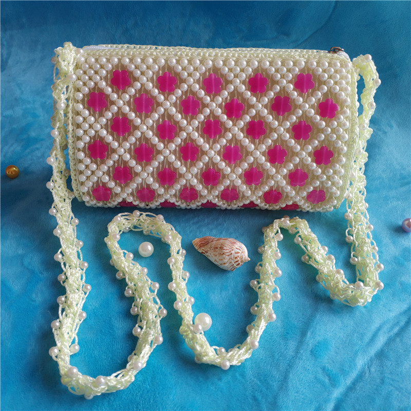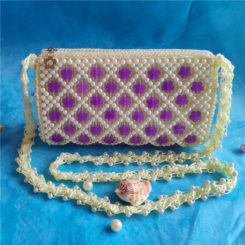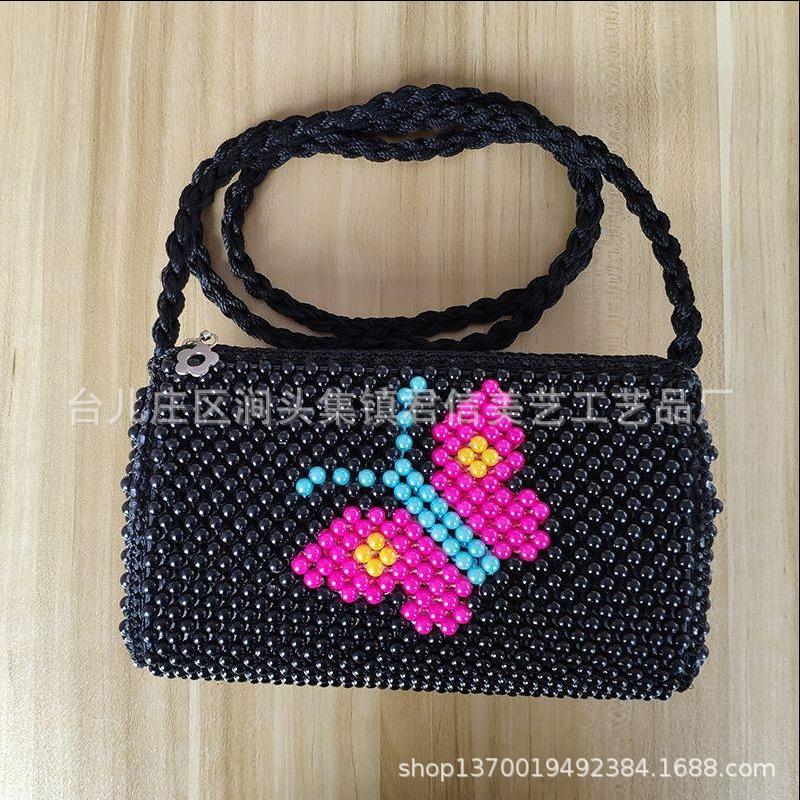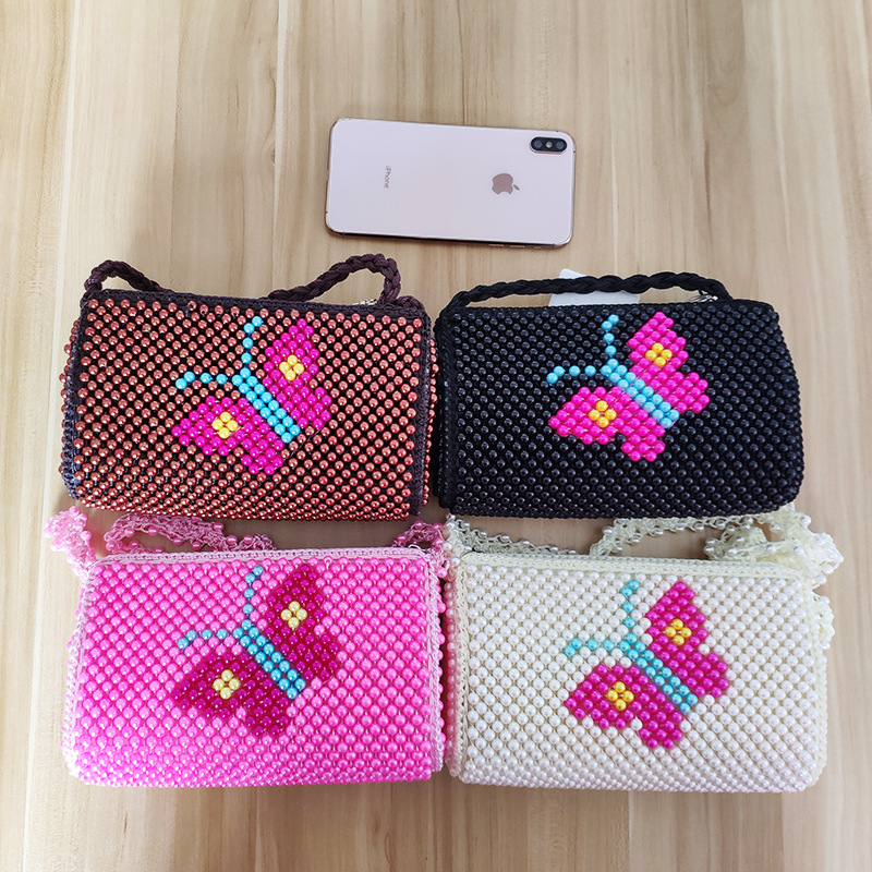 2022 여름 DIY 완성 된 가방 수제 구슬 자두 꽃 나비 여성용 가방 다채로운 짠 보관 어깨 가방스토어 가기