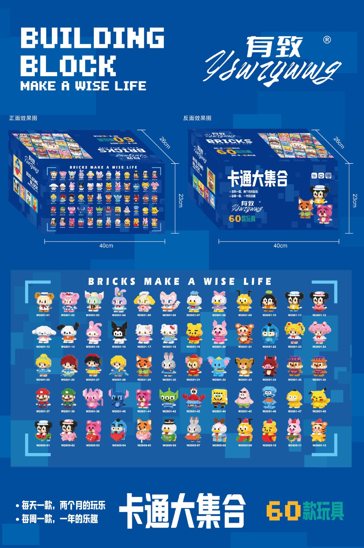 • [폭발 1] 60 개의 작은 동물 빌딩 블록 세트 [반복없이 60 개의 상자 포함]