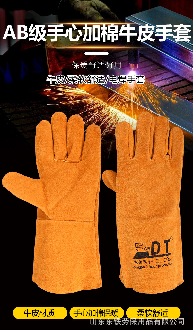 하이 퀄리티 AB급 골든 소가죽 단일 레이어 팜 면 용접 보호 단열 땀 흡수 화상 방지 용접기 장갑