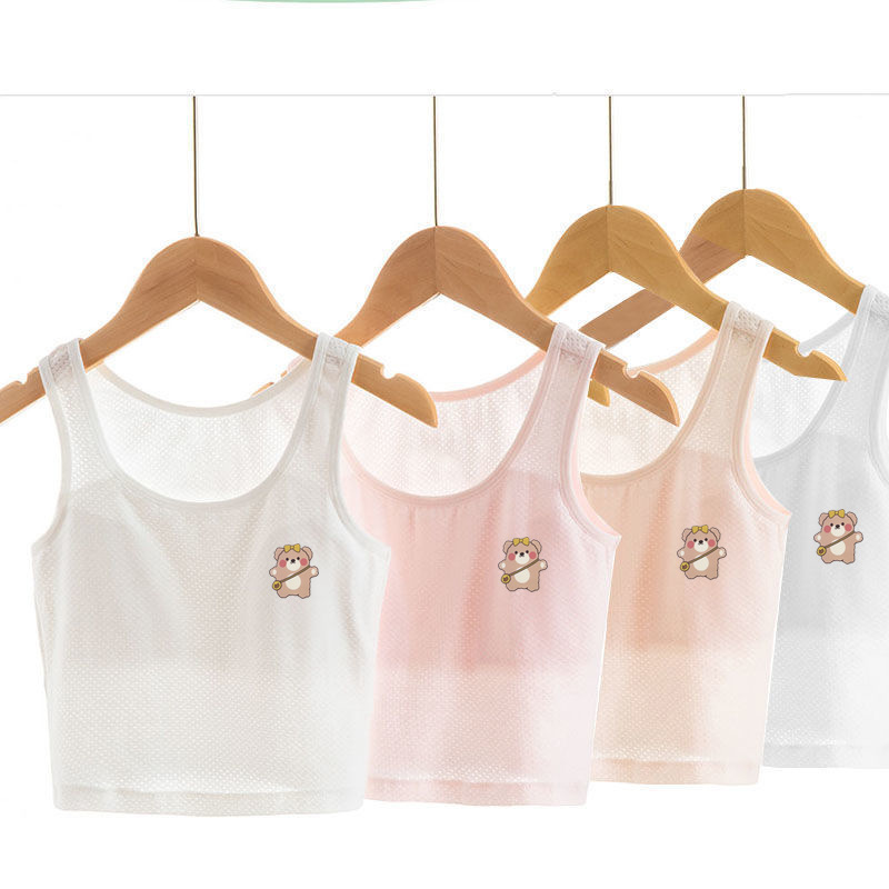 발달기에 중학교 및 고등학교 소녀를위한 스틸 링이없는 여아 속옷 초등 및 중등 학생을위한 작은 조끼 여성용 메쉬 더블 레이어 통기성 브래지어