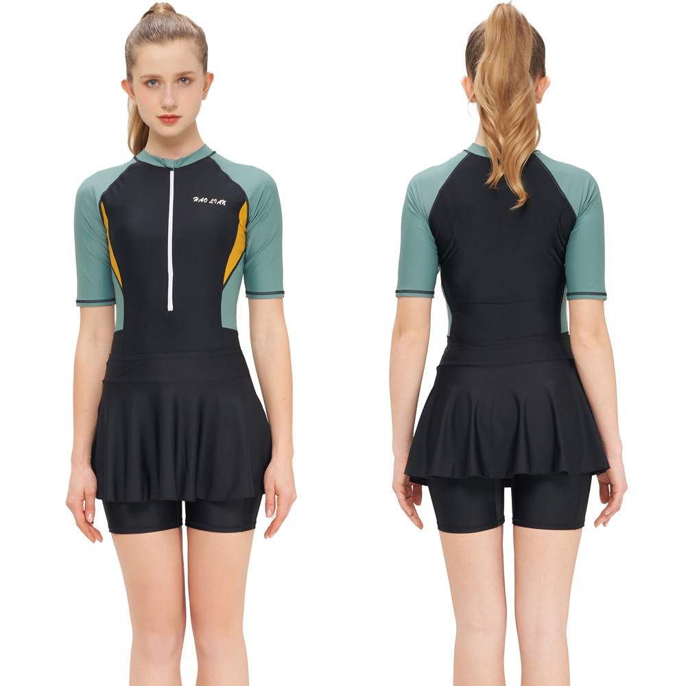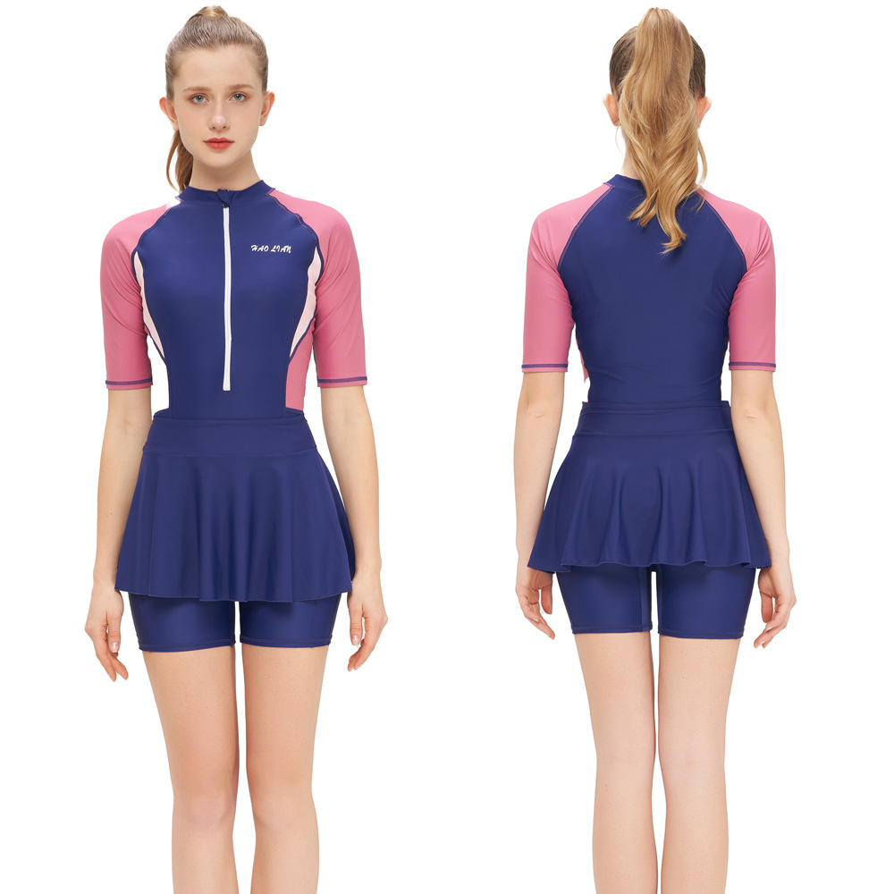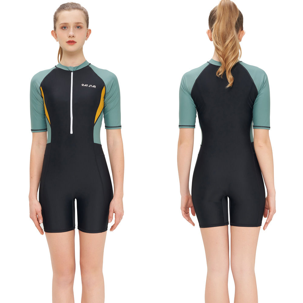 크로스 보더 새로운 여성용 반팔 5 점 바지 수영복 자외선 차단제 보존 슬리밍 온천 전문 교육 사용자 정의스토어 가기