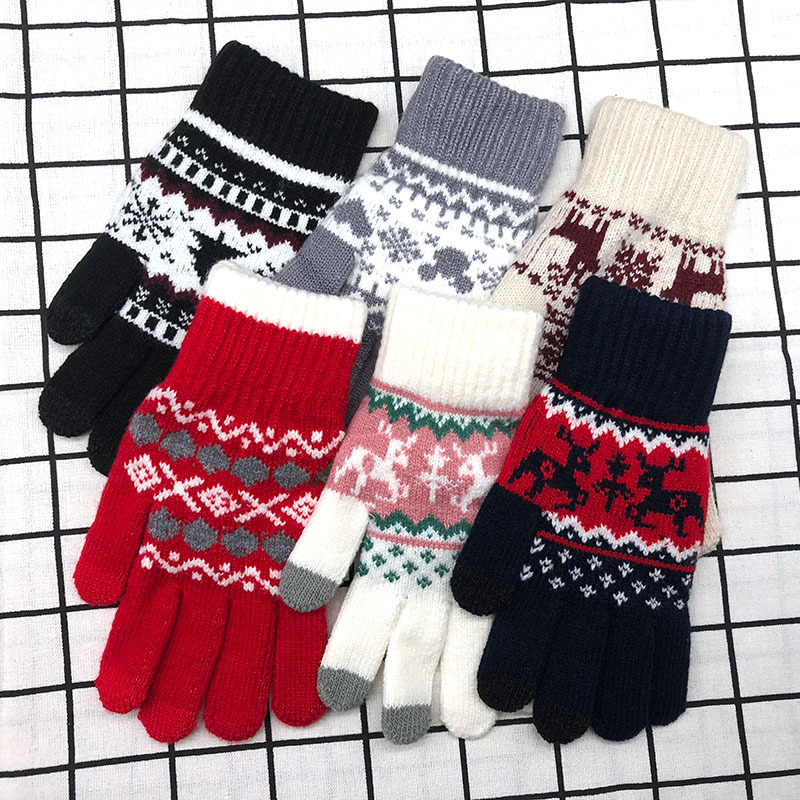 가을과 겨울 자카드 오프셋 인쇄 따뜻한 니트 터치 스크린 손가락 장갑 캐시미어 성인 장갑 (로고 포함)스토어 가기