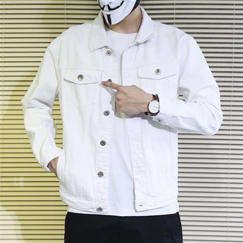 봄과 가을 남성 데님 재킷 슬림핏 모든 매치 단색 작업 재킷 남성 유행 캐주얼 청바지스토어 가기