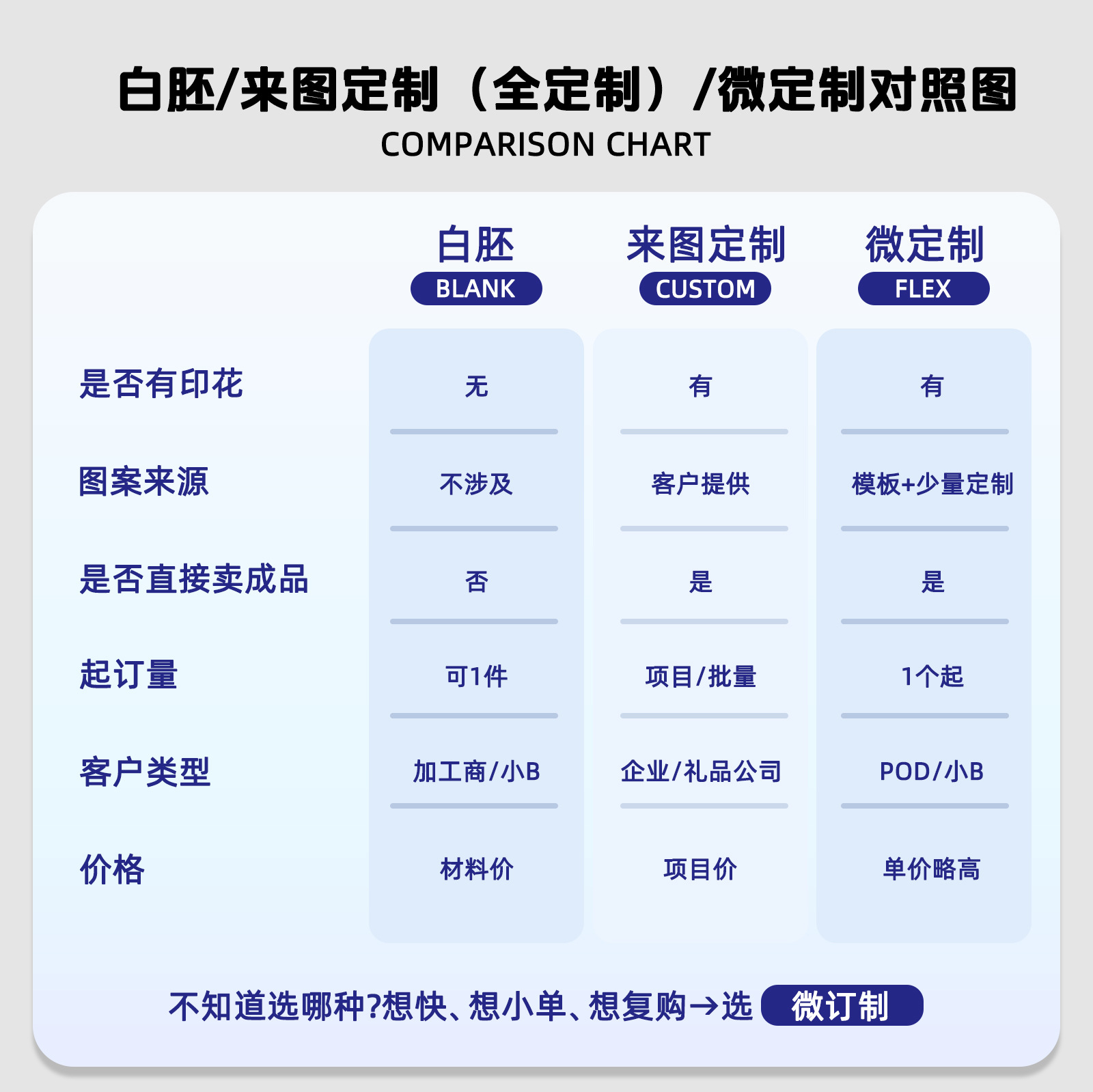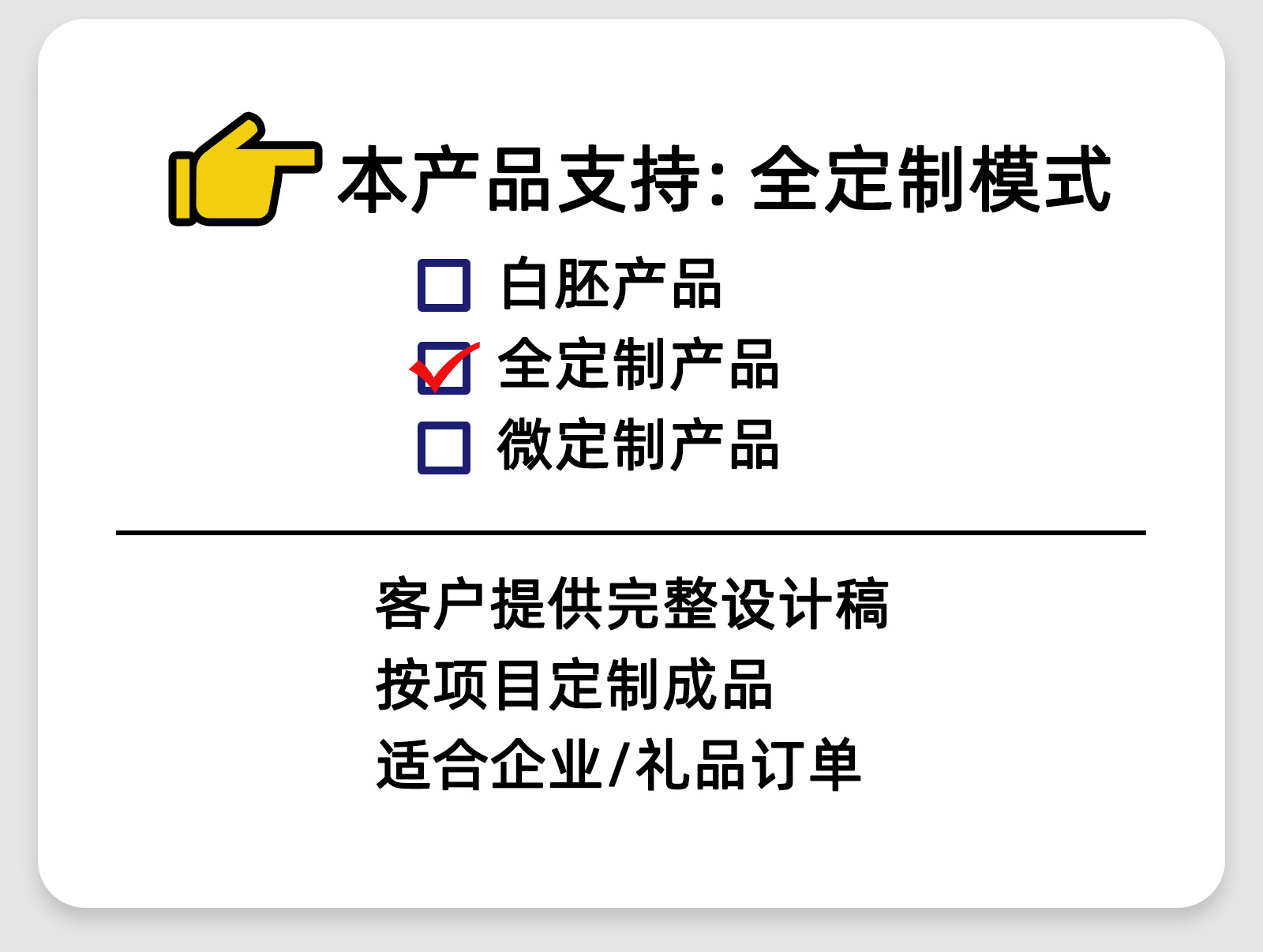 ④ 来图定制十件起订门槛低,适合跨境电商卖家和礼品公司小单试款大货返单。