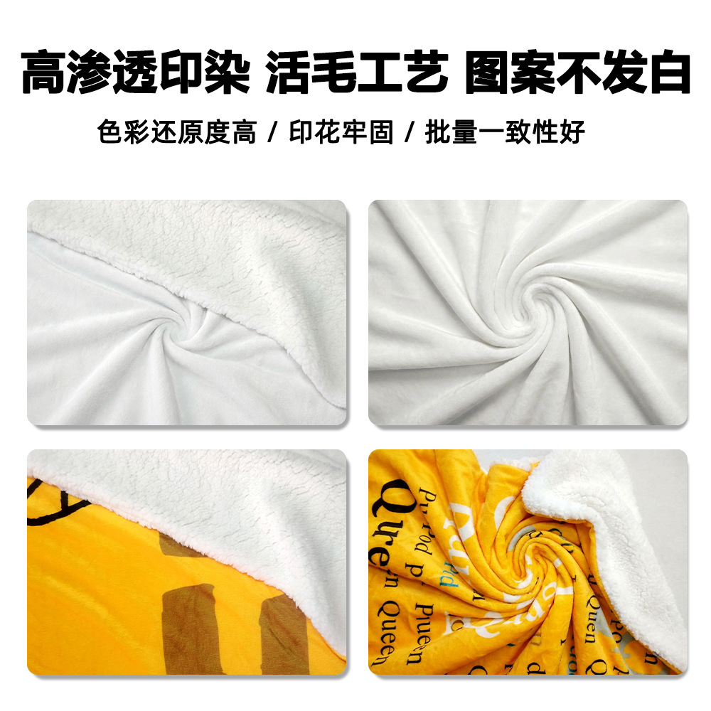 ① 工厂直供来图定制,提供图案即可生产专属羊羔绒双层毛毯,支持批量供货。