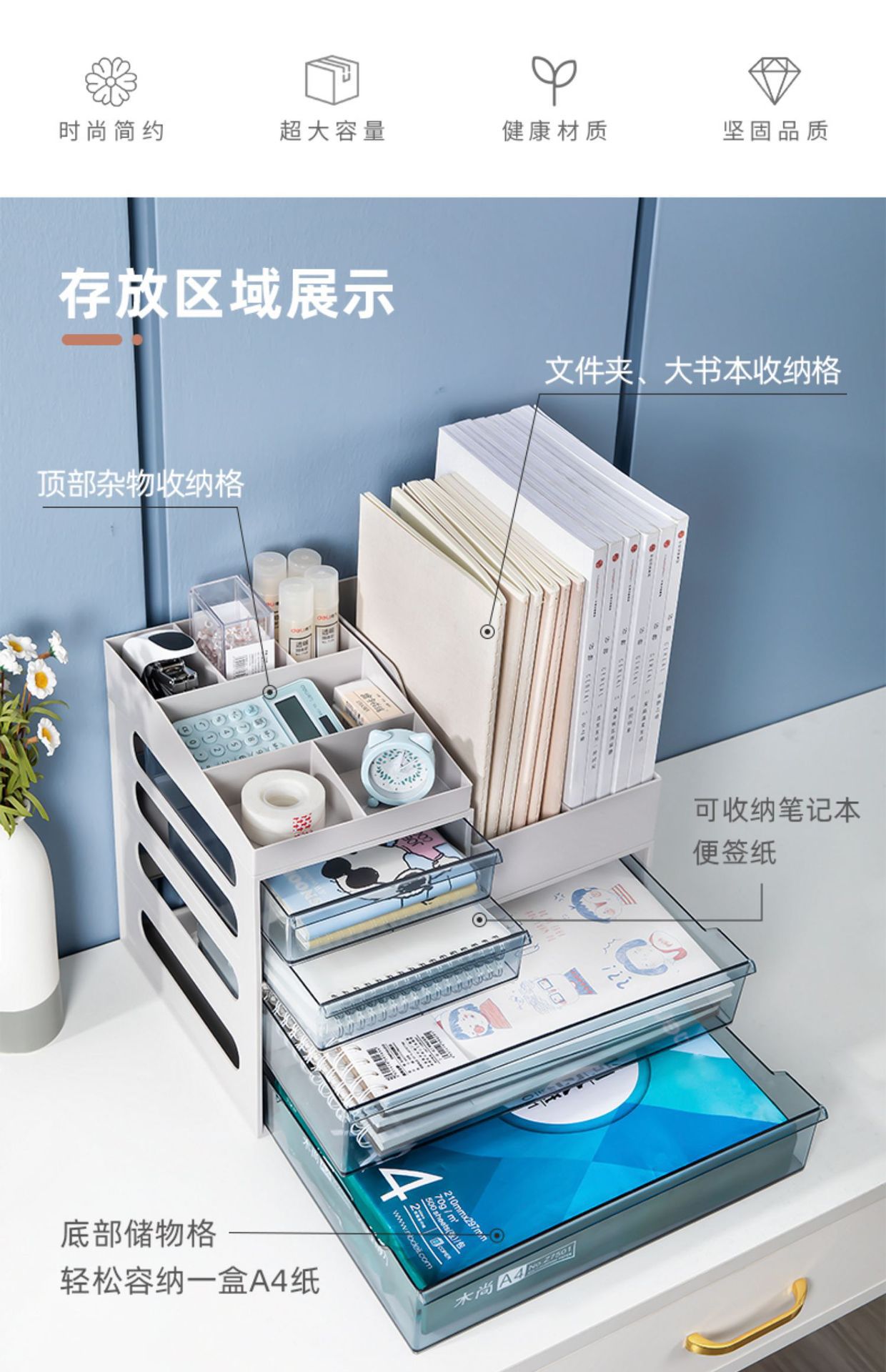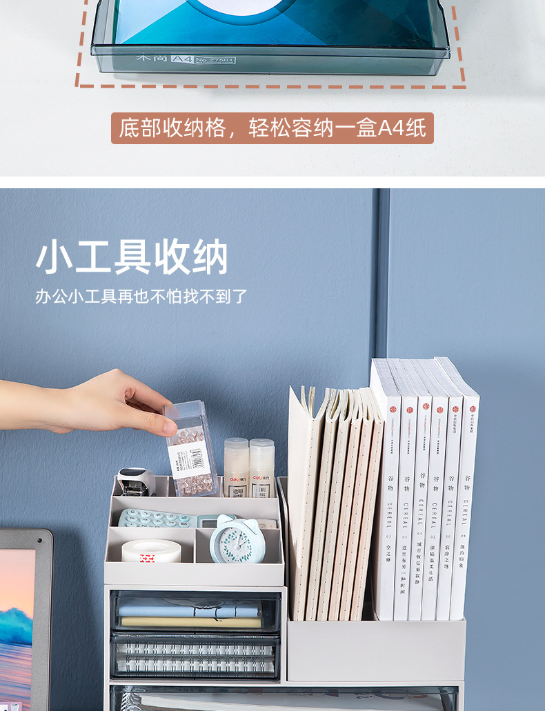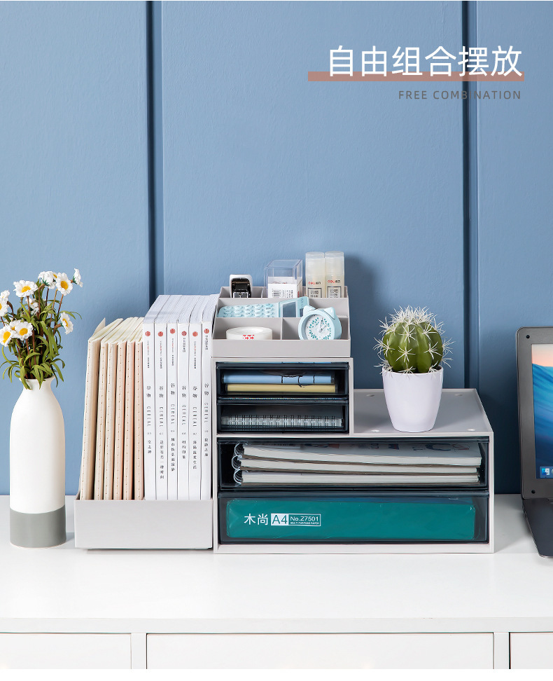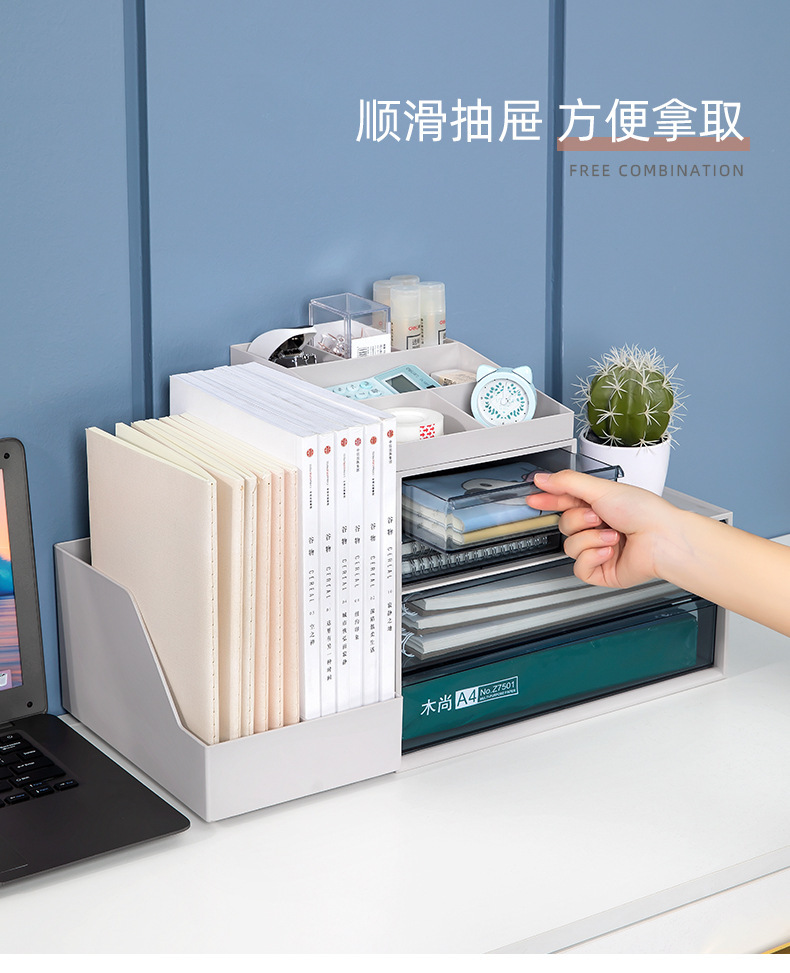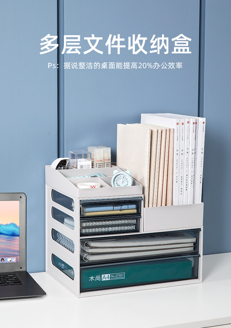 유나이 사무실 수납 선반 데스크탑 다층 파일 폴더 A4 테이블 수납함 책상 문구 정리 다기능스토어 가기
