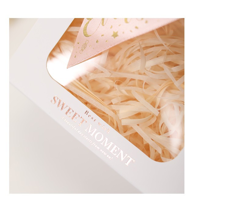 • 한국 핑크 금 리본 라피아 잔디; 흰색 판지; 스몰 사이즈 (14*8*16.5cm)