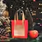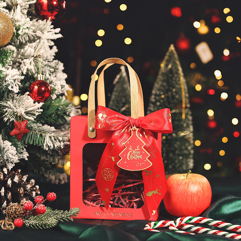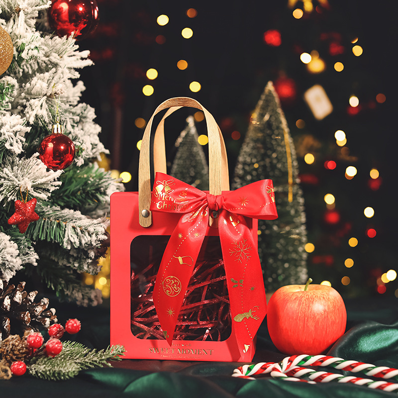 • 레드 + 크리스마스 레드 리본 + 라피아 + 크리스마스 레드 태그, 흰색 판지, 중간 크기(18*8.5*21cm)