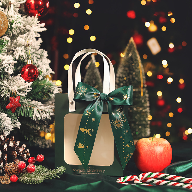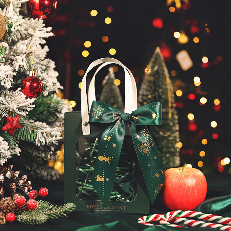 • 짙은 녹색 + 크리스마스 녹색 리본, 흰색 판지, 중간 크기(18*8.5*21cm)