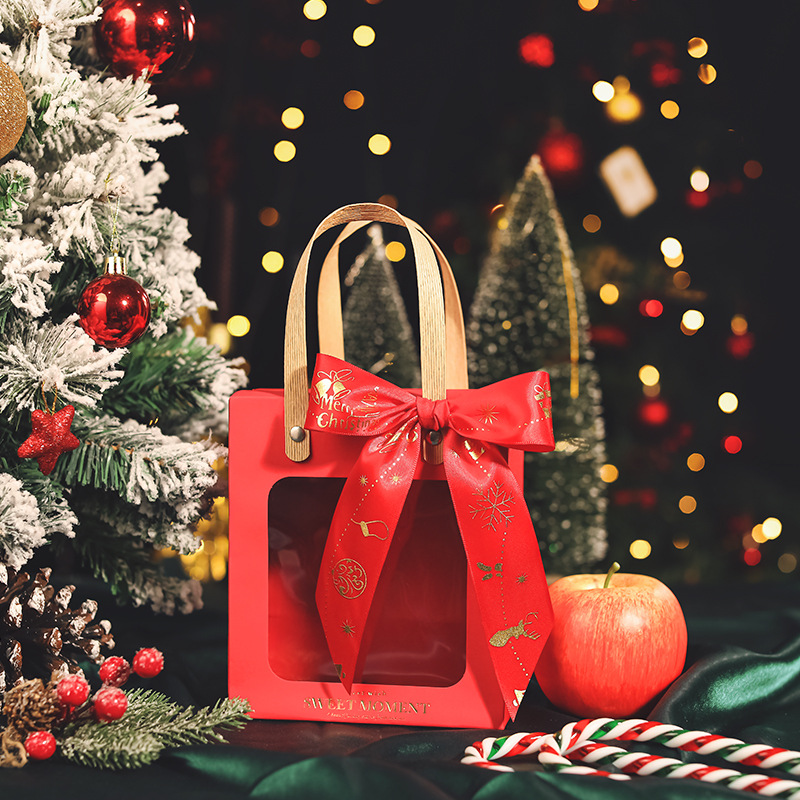 • 레드 + 크리스마스 레드 리본, 흰색 판지, 중간 크기(18*8.5*21cm)