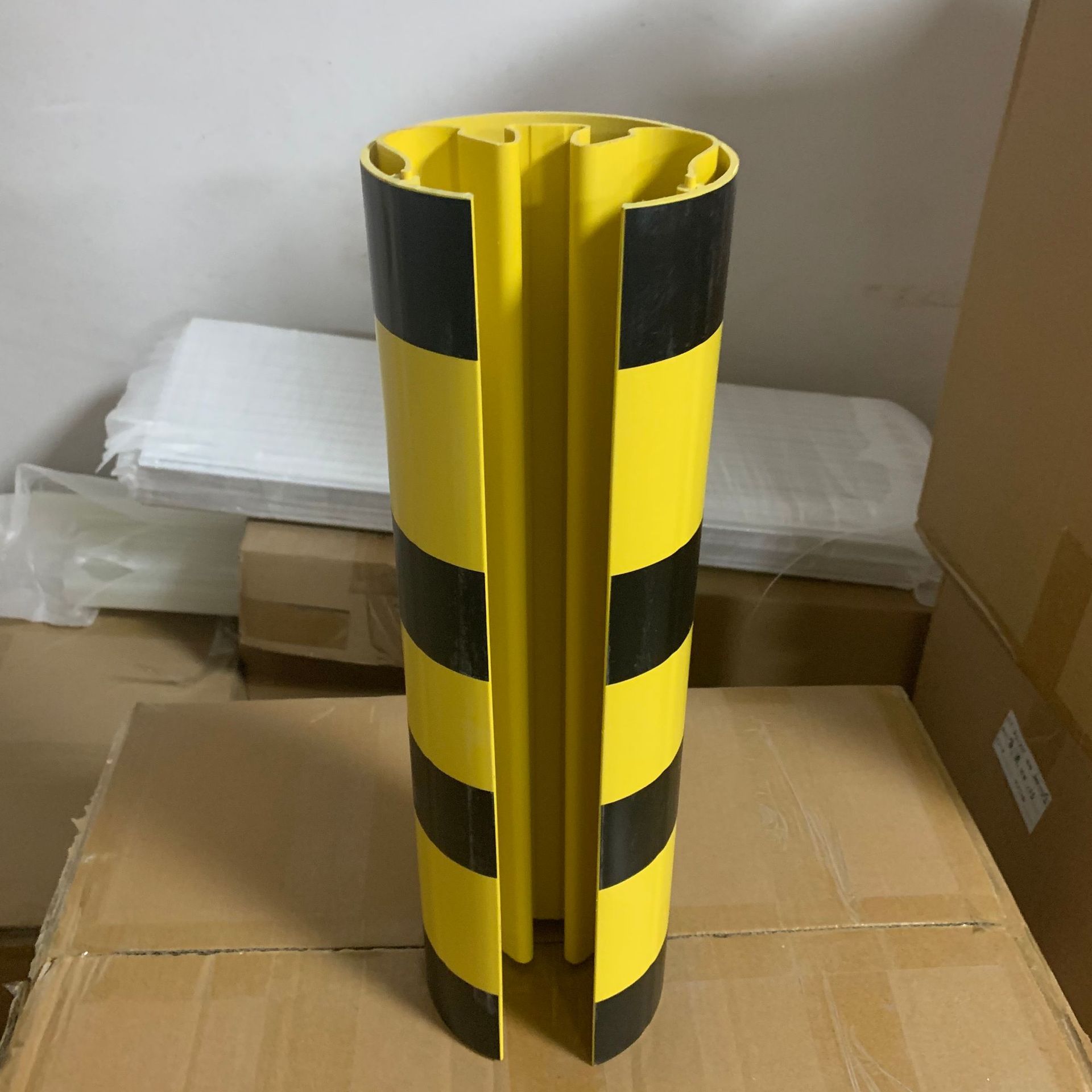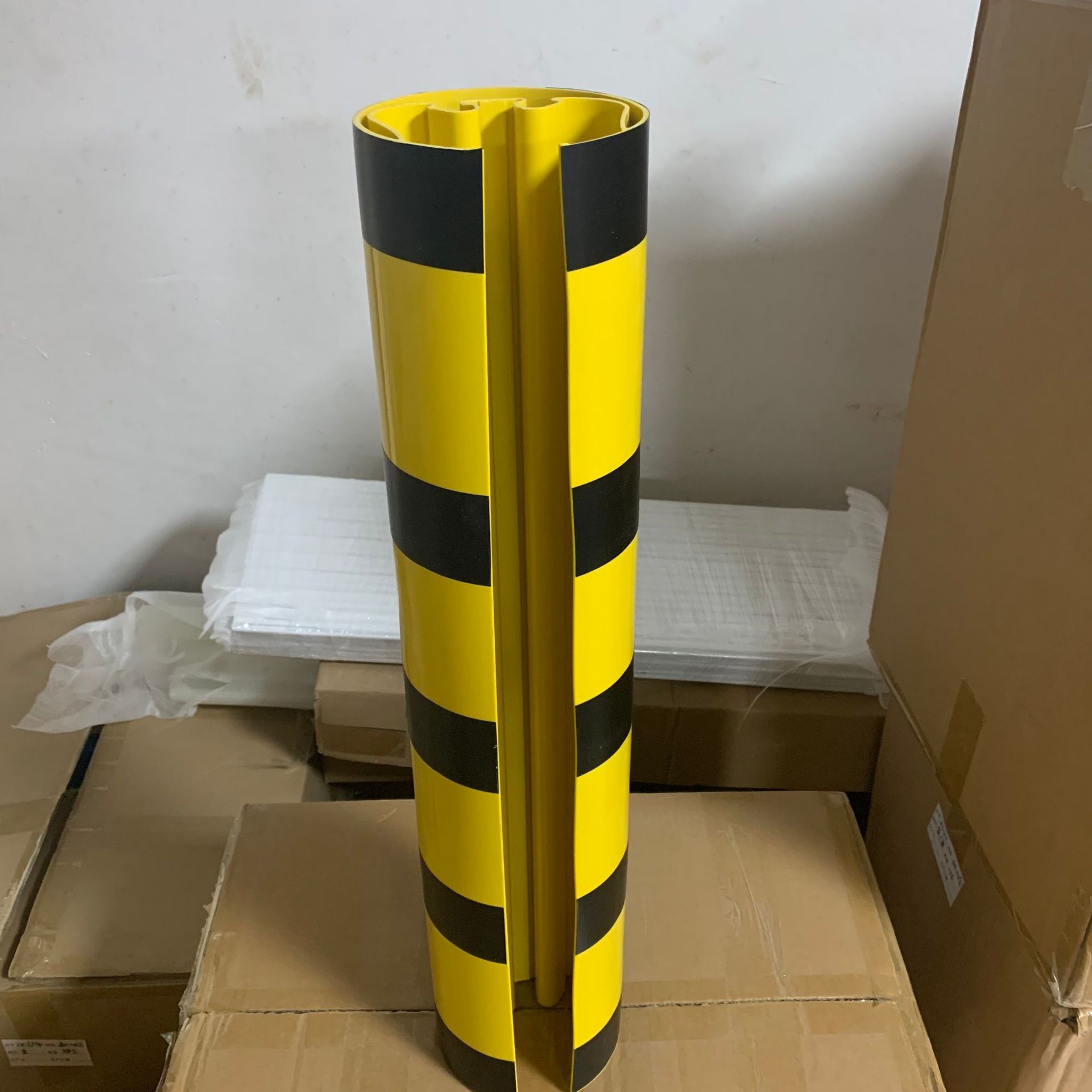 교통 충돌 방지 이중 색상 보호 PVC 선반 모서리 보호대 창고 선반 기둥 곡선형 보호 선반 모서리 보호대