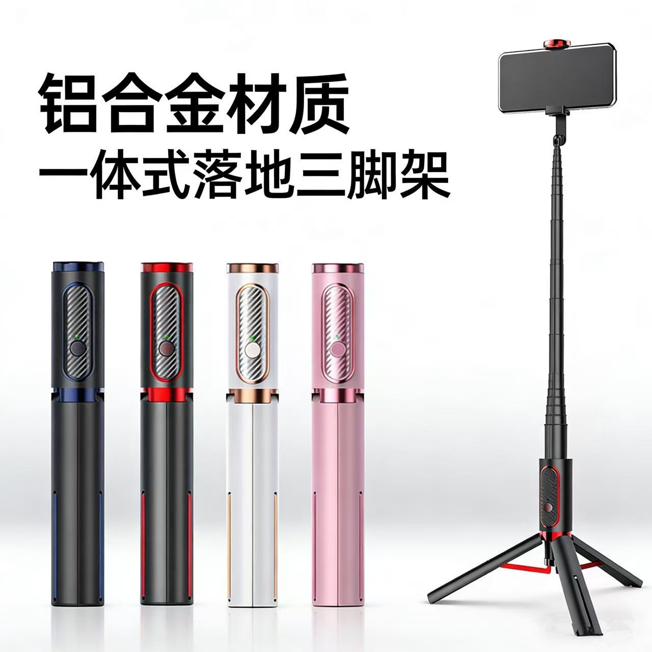 인기 상품 알루미늄 합금 일체형 플로어 스탠딩 셀카봉 삼각대 블루투스 리모컨 휴대폰 라이브 방송 및 사진 촬영용 도구