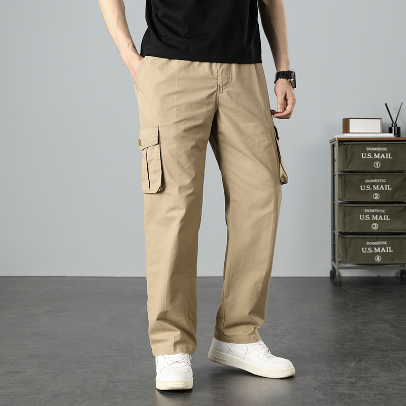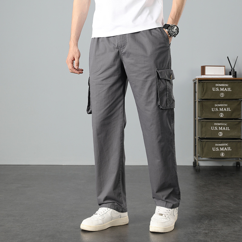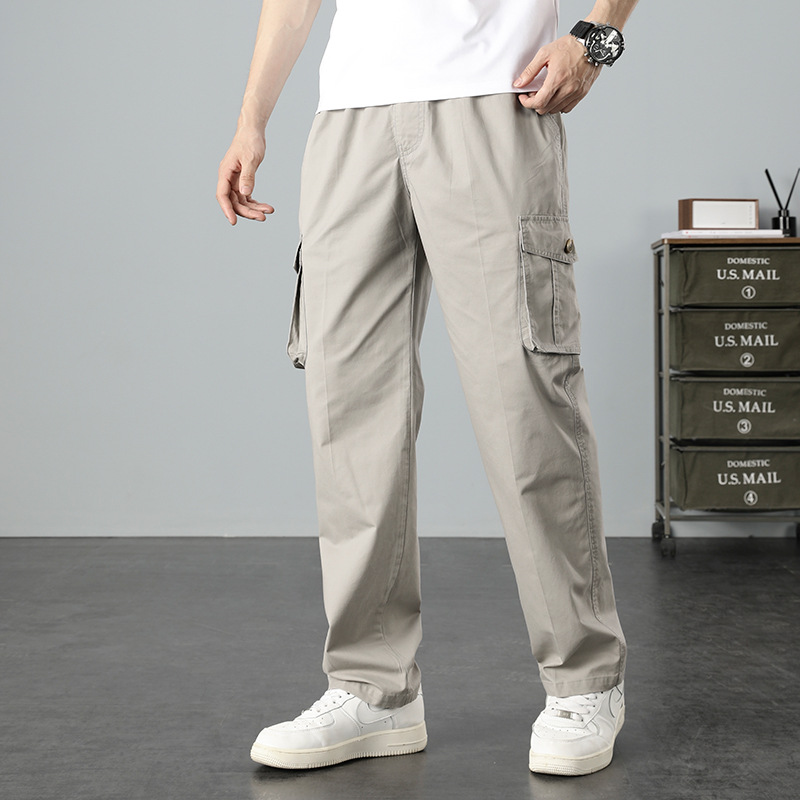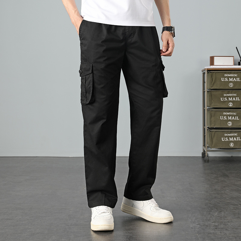 봄, 가을 남성용 크로스보더 기성복 바지, 면, 중년, 검정색, 단색, 중간 허리, 신축성 없는 작업복, 캐주얼 면스토어 가기