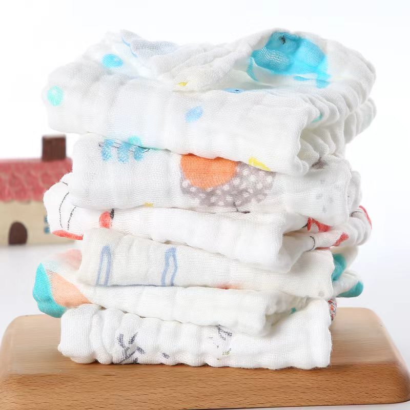 순면 거즈 사각 수건 아기 면 세안 손수건 아기 타액 수건 흡수성 인쇄 어린이 작은 수건 도매