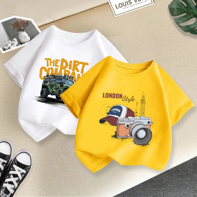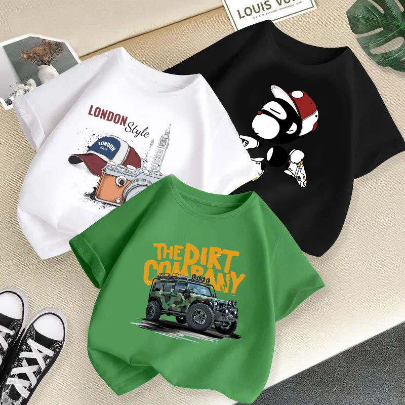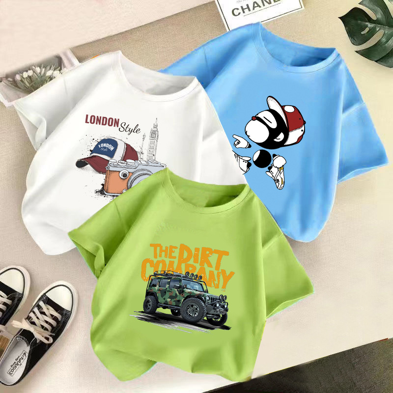 남아 여아 반팔 티셔츠 면 2026 여름 신상 스타일리쉬 아동 반팔 만화 프린트 상의 한국판 수출용