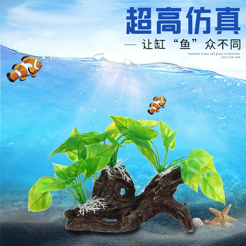 인공 식물 물고기 탱크 세트 식물 수족관 물고기 탱크 풍경 장식 수지 가짜 인공 물에 잠긴 나무 나무 실버스토어 가기