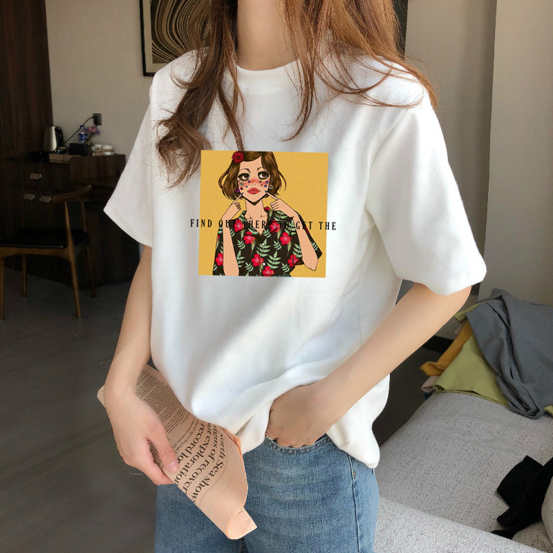 화이트 퓨어 코튼 인 트렌디 브랜드 하라주쿠 스타일 여성용 반팔 티셔츠 2025 새로운 루즈 이너 반팔 바닥 셔츠 여름스토어 가기