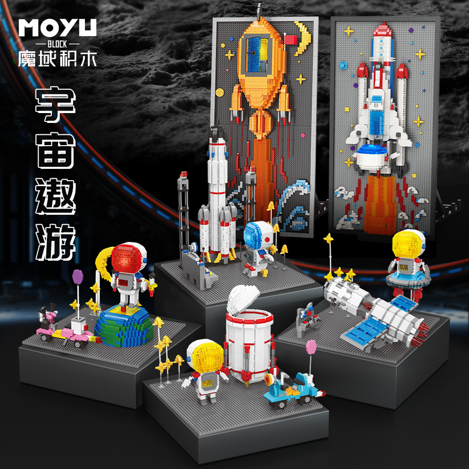 우주 비행사 로켓 발사 스테이션 위성 미니어처 작은 입자 퍼즐 빌딩 블록 장난감 장식품 도매스토어 가기