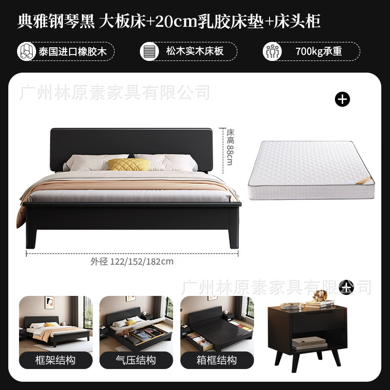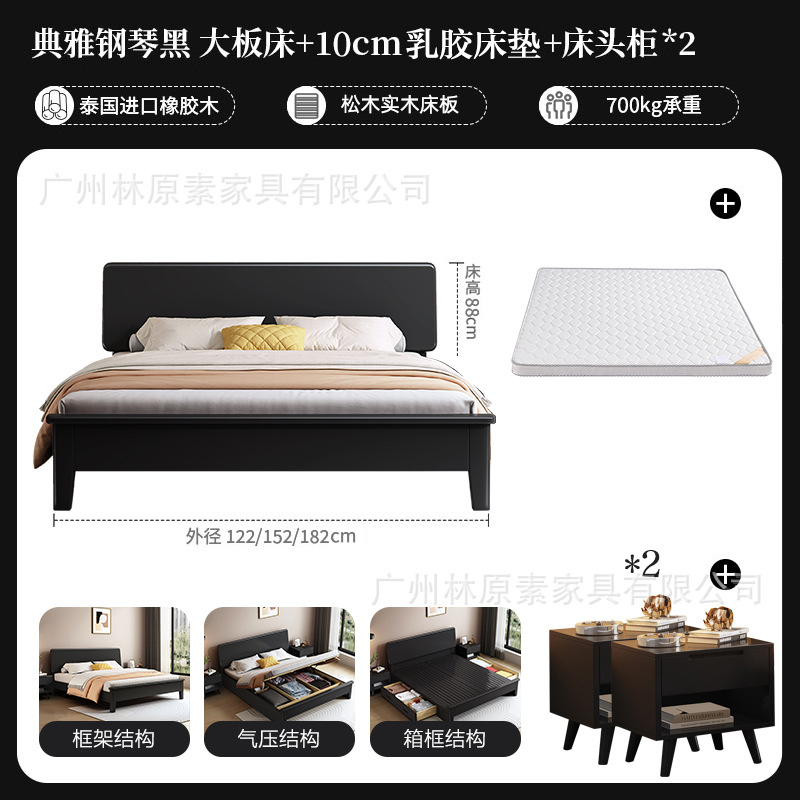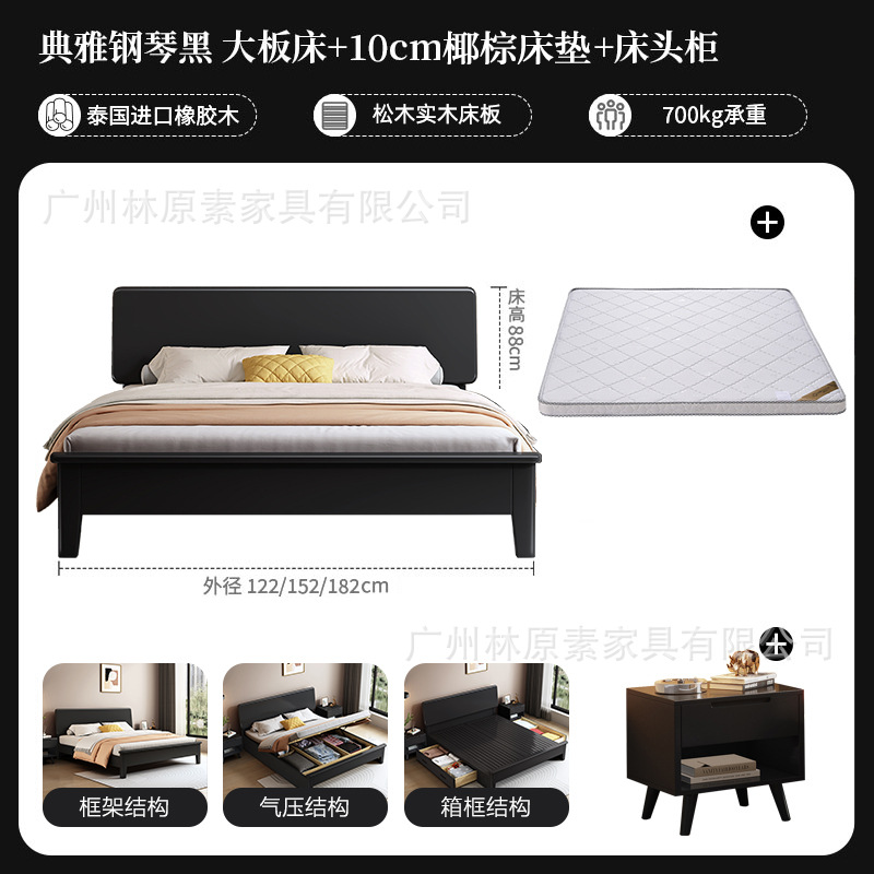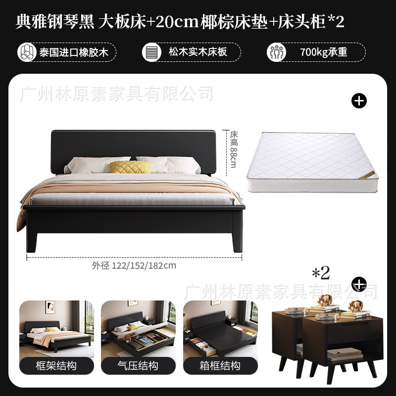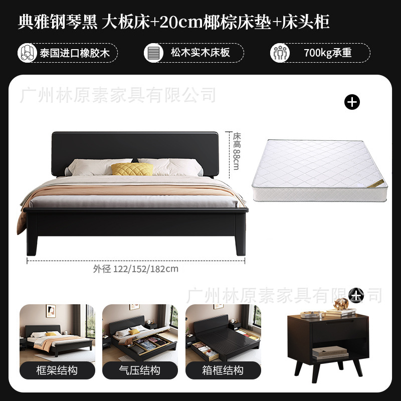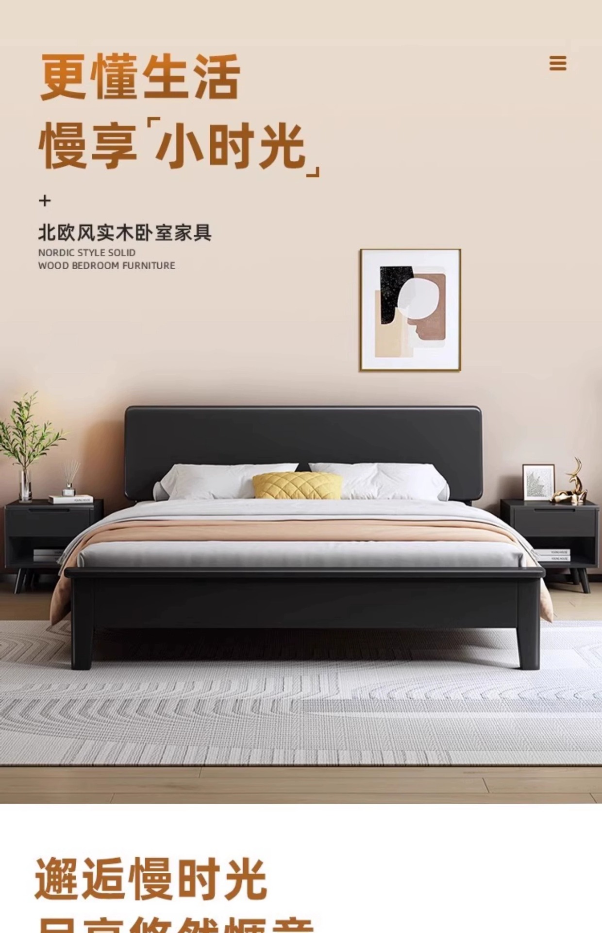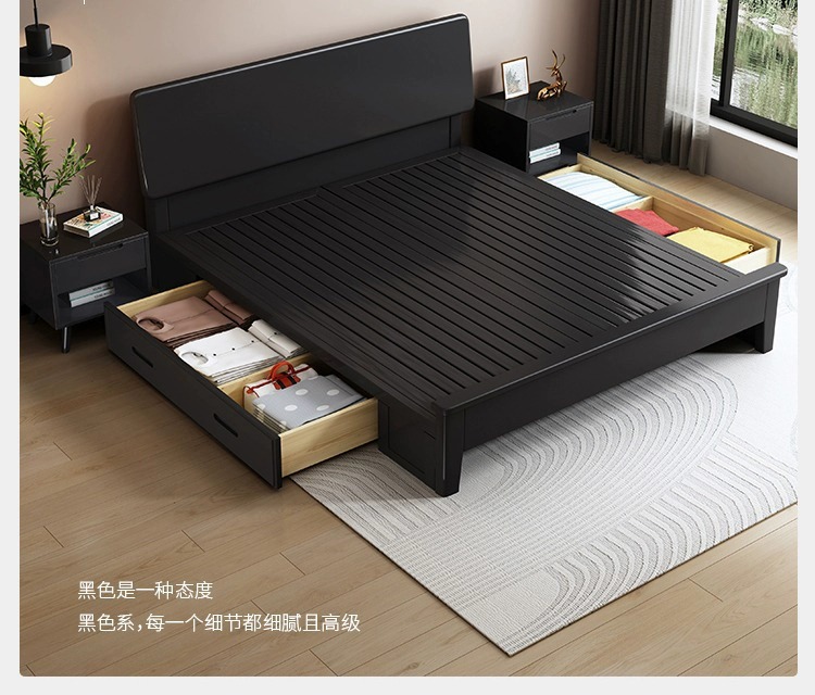북유럽 단단한 나무 침대 현대 단순 1.8 m 블랙 더블 침대 마스터 침실 1.5 작은 아파트 공주 침대 침실 웨딩 침대스토어 가기