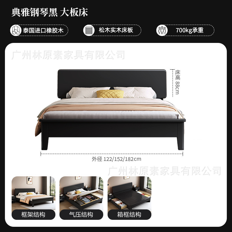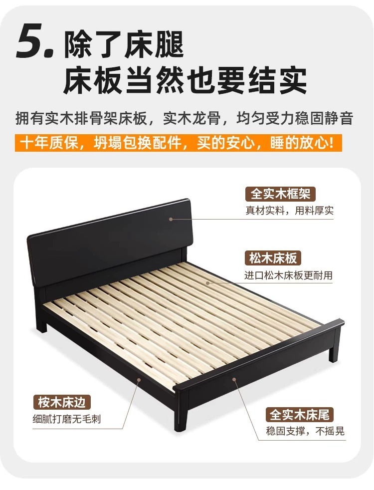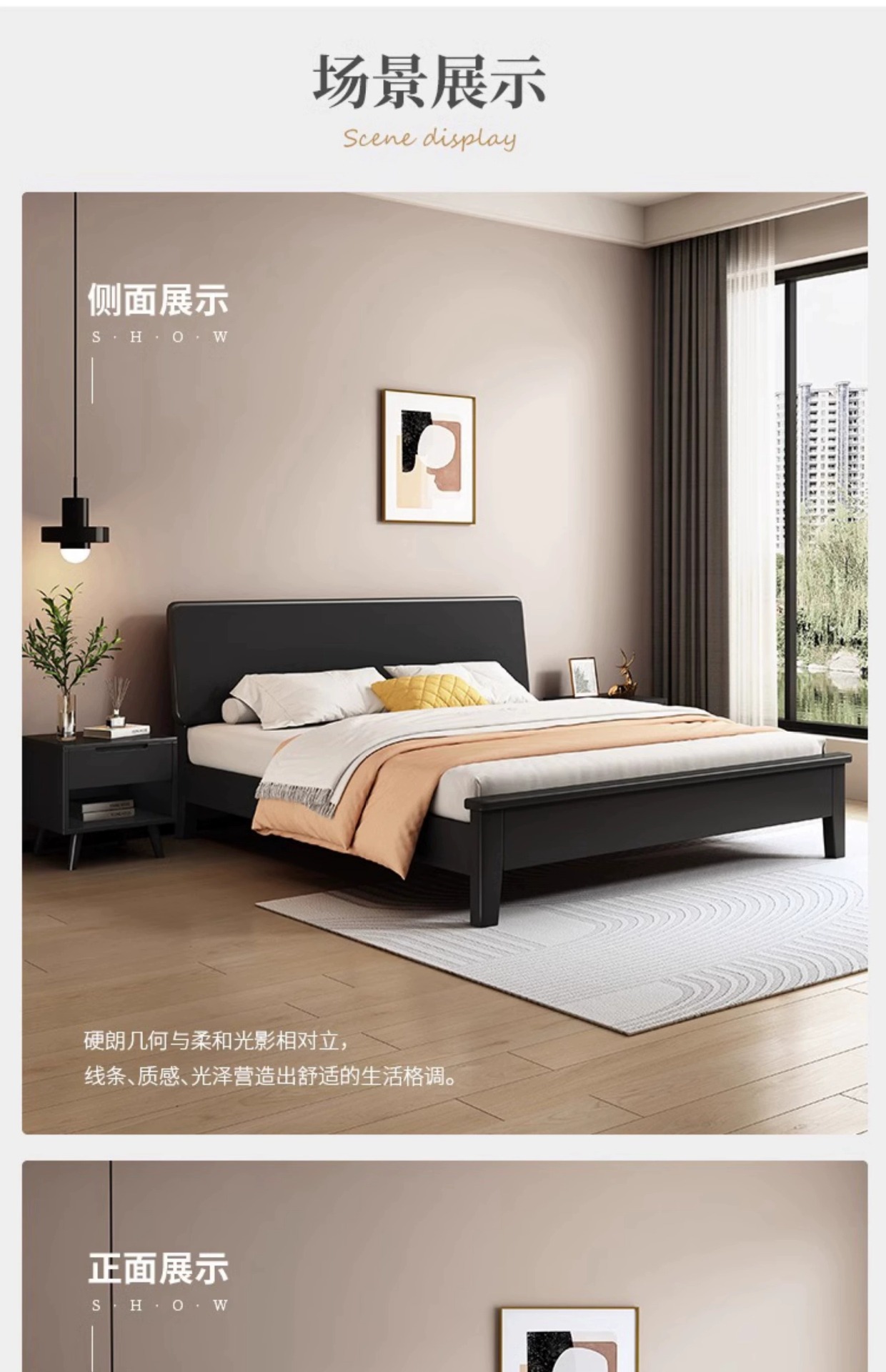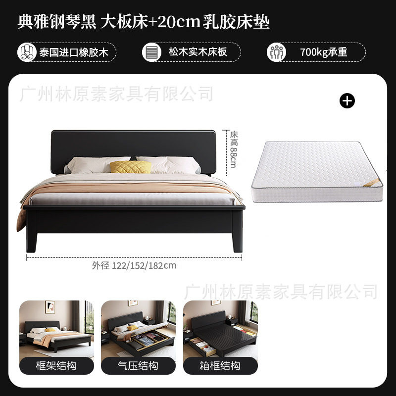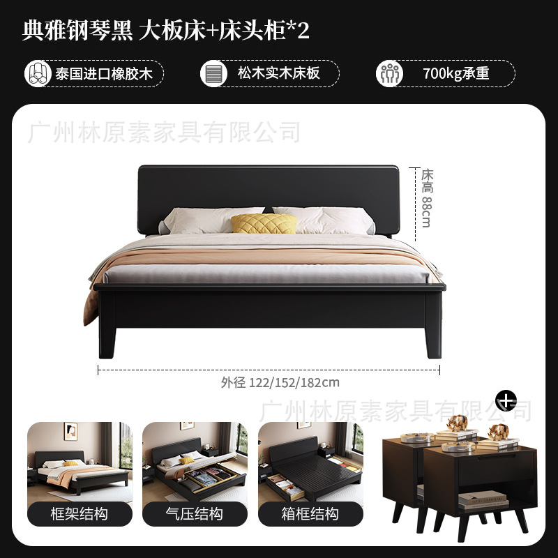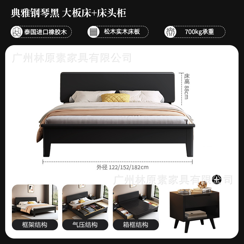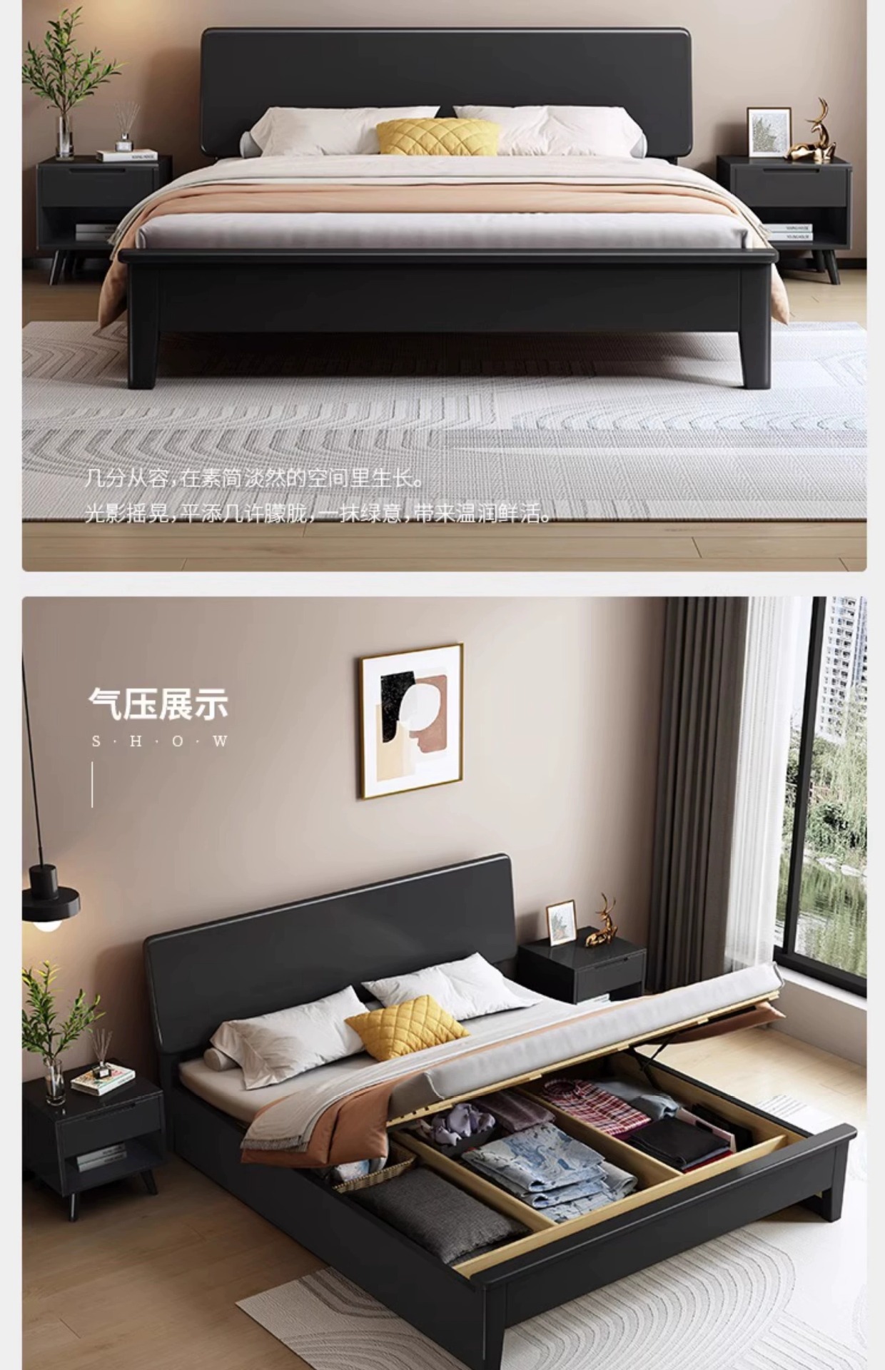 북유럽 단단한 나무 침대 현대 단순 1.8 m 블랙 더블 침대 마스터 침실 1.5 작은 아파트 공주 침대 침실 웨딩 침대스토어 가기