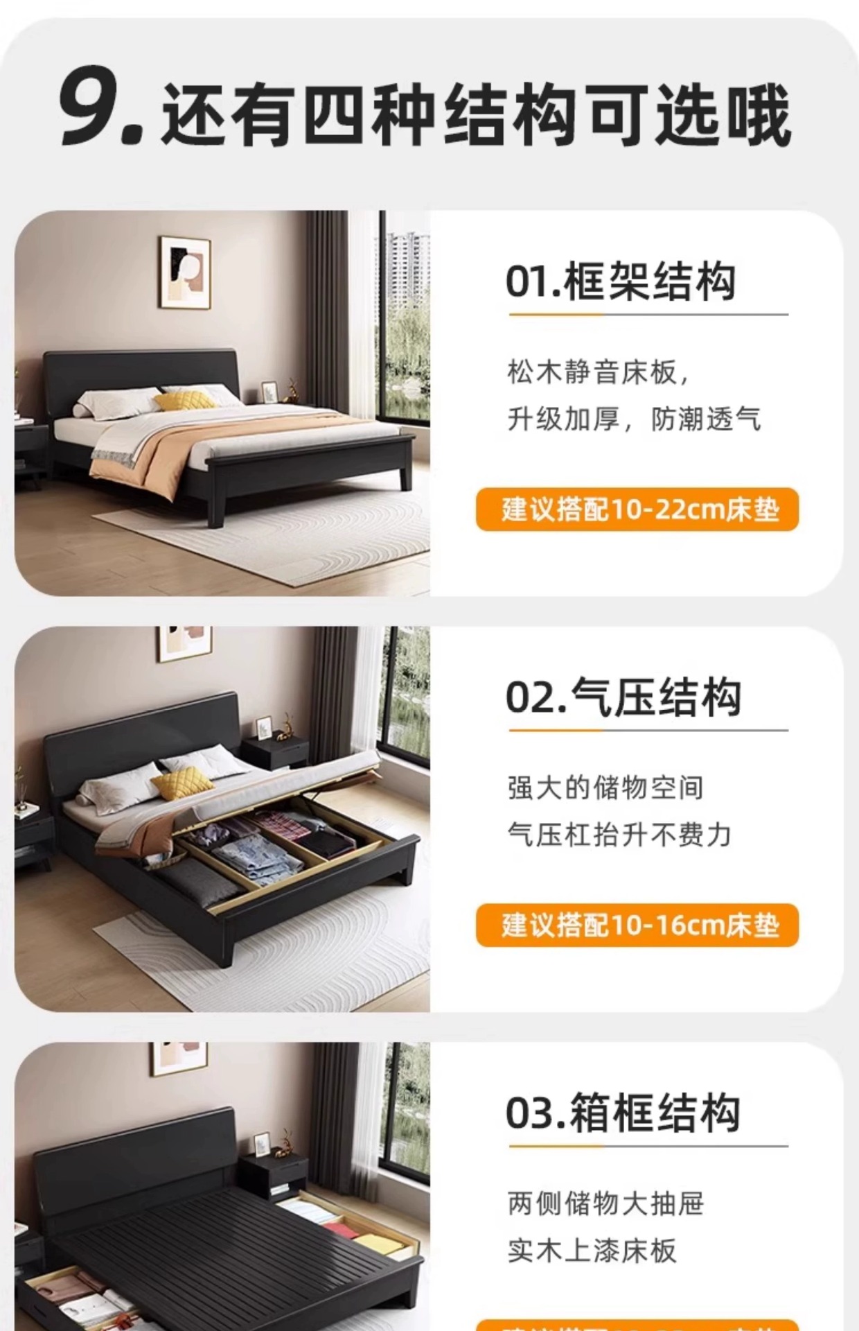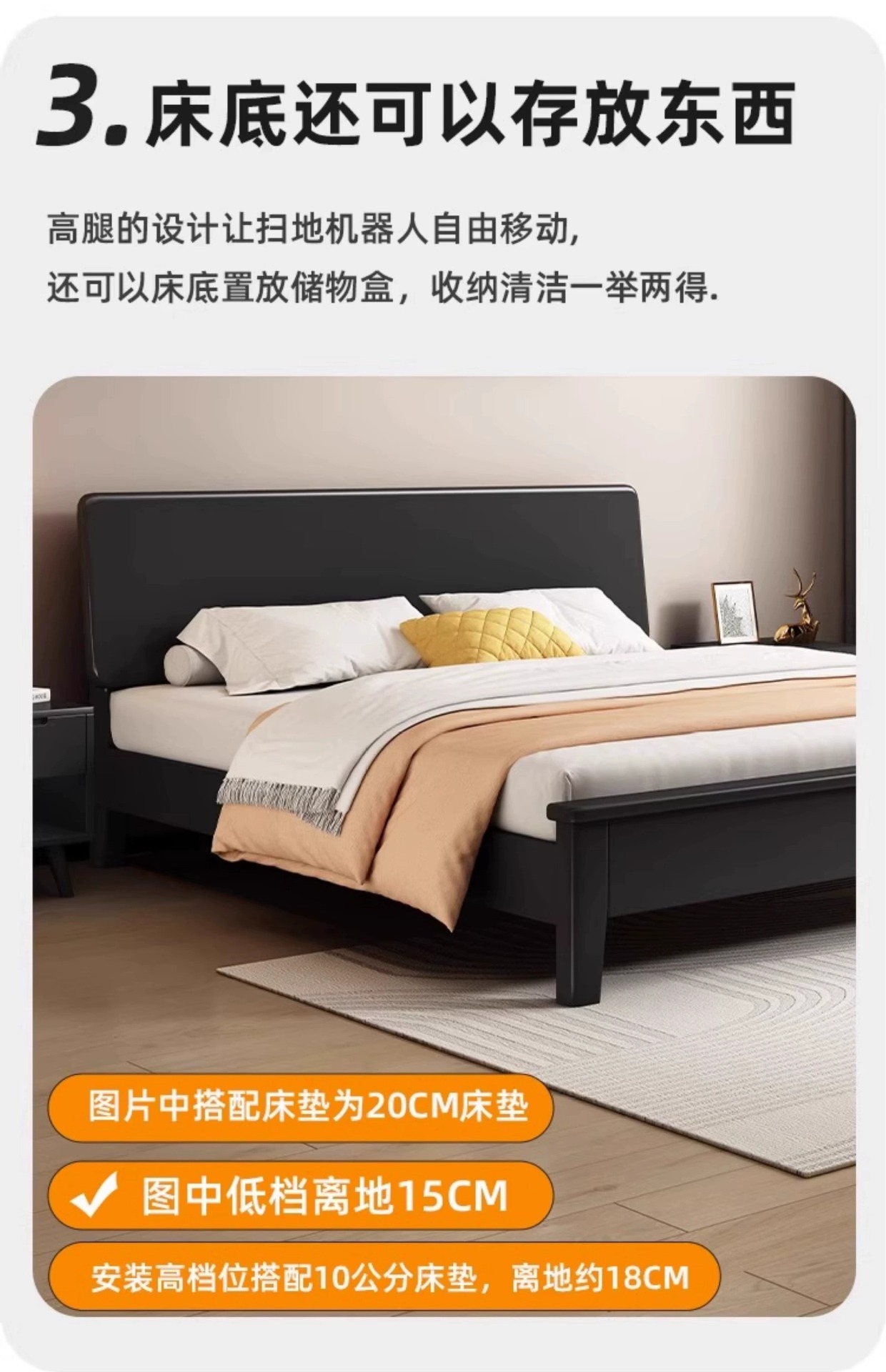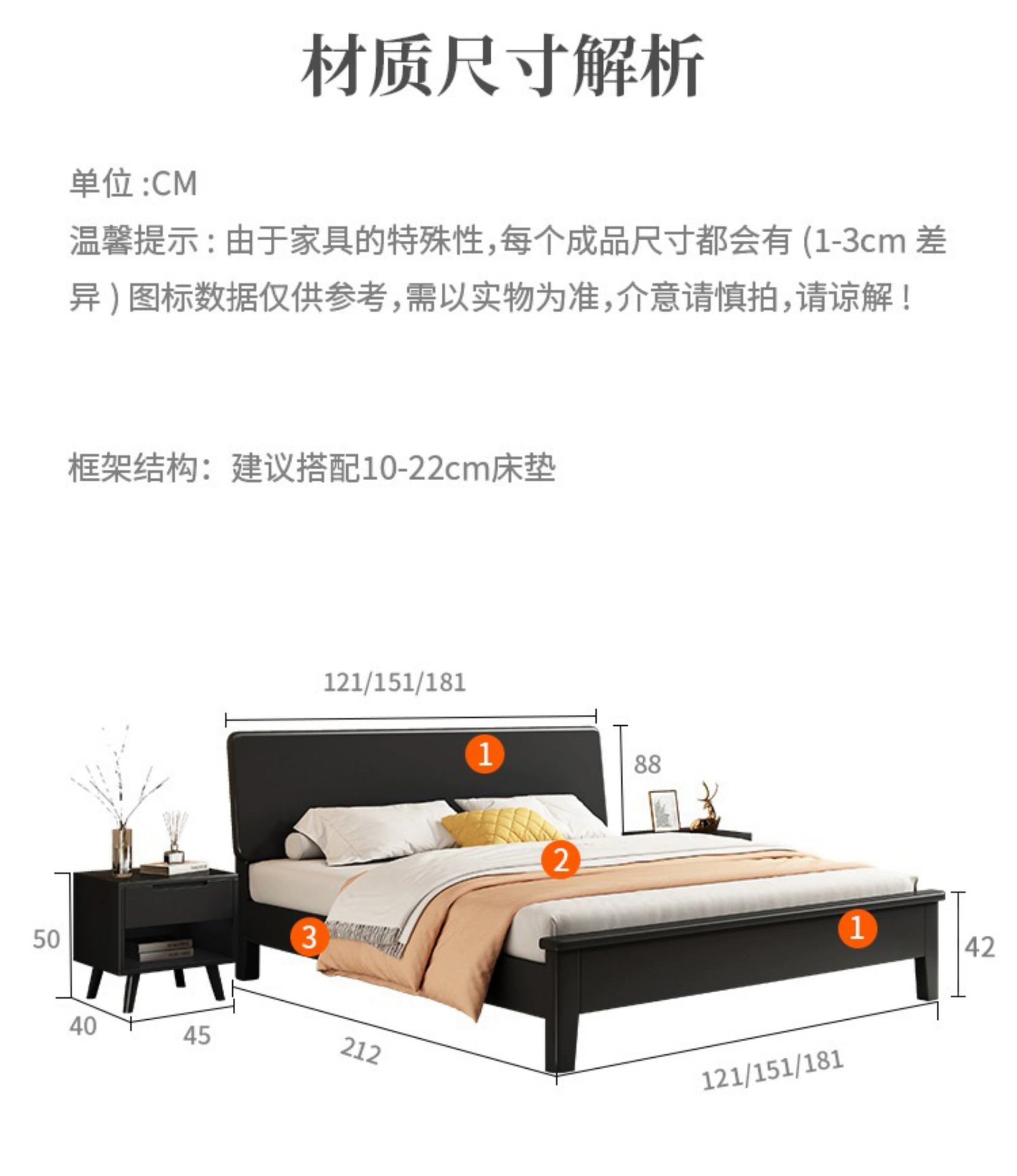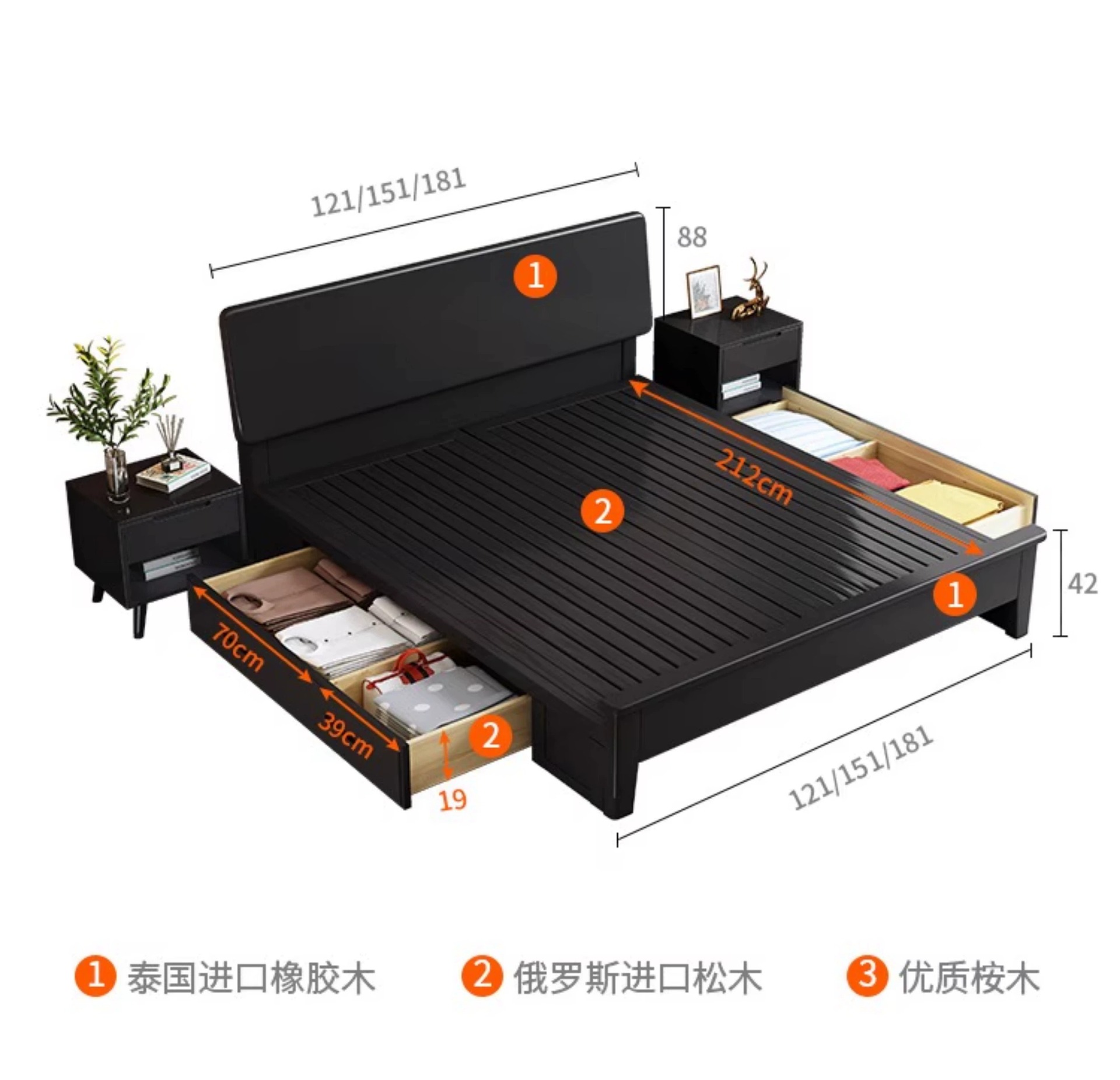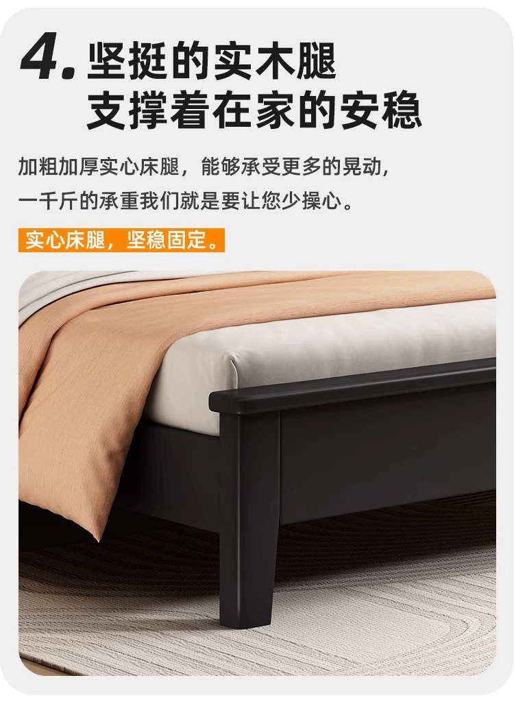 북유럽 단단한 나무 침대 현대 단순 1.8 m 블랙 더블 침대 마스터 침실 1.5 작은 아파트 공주 침대 침실 웨딩 침대스토어 가기