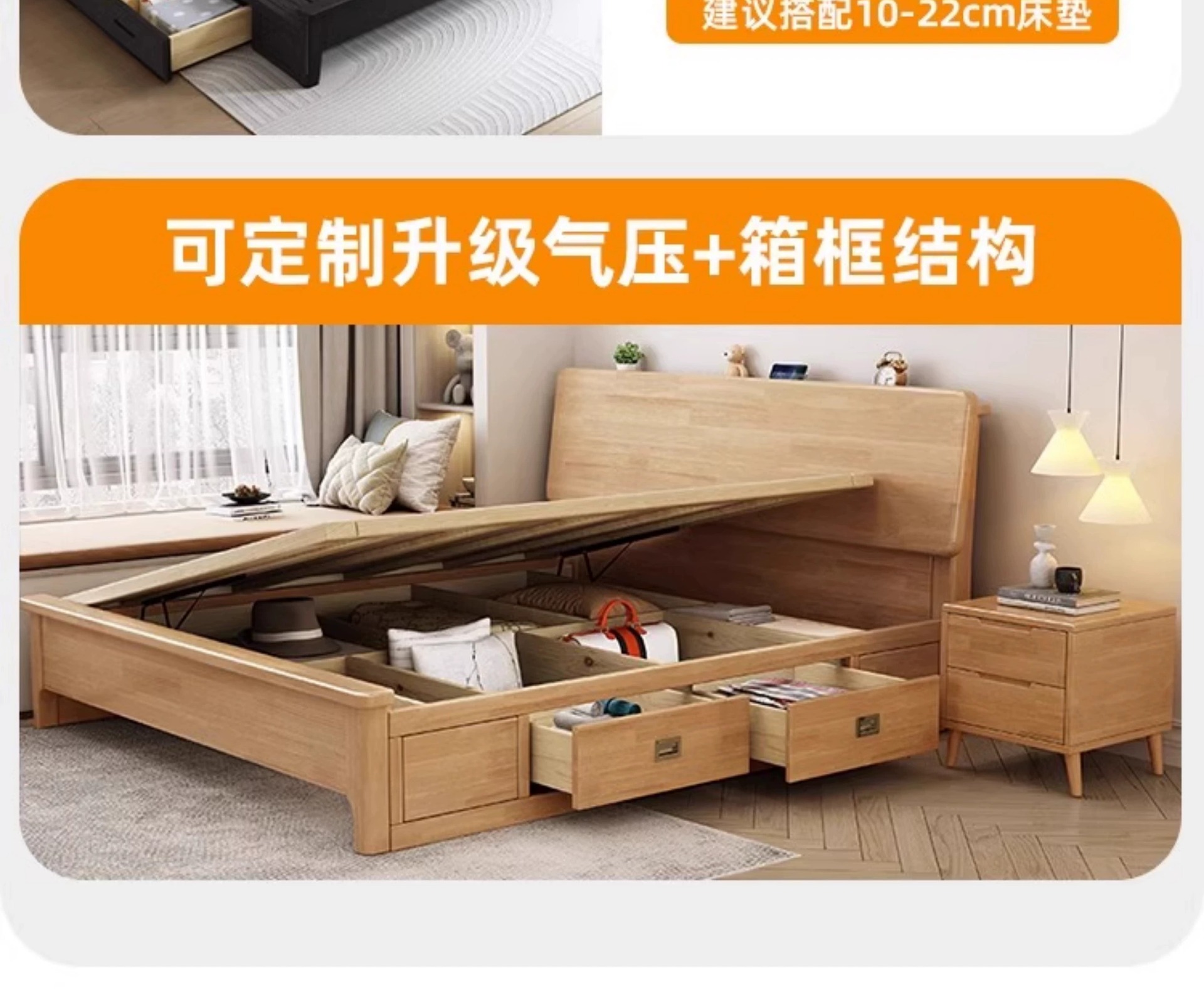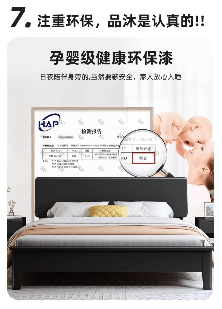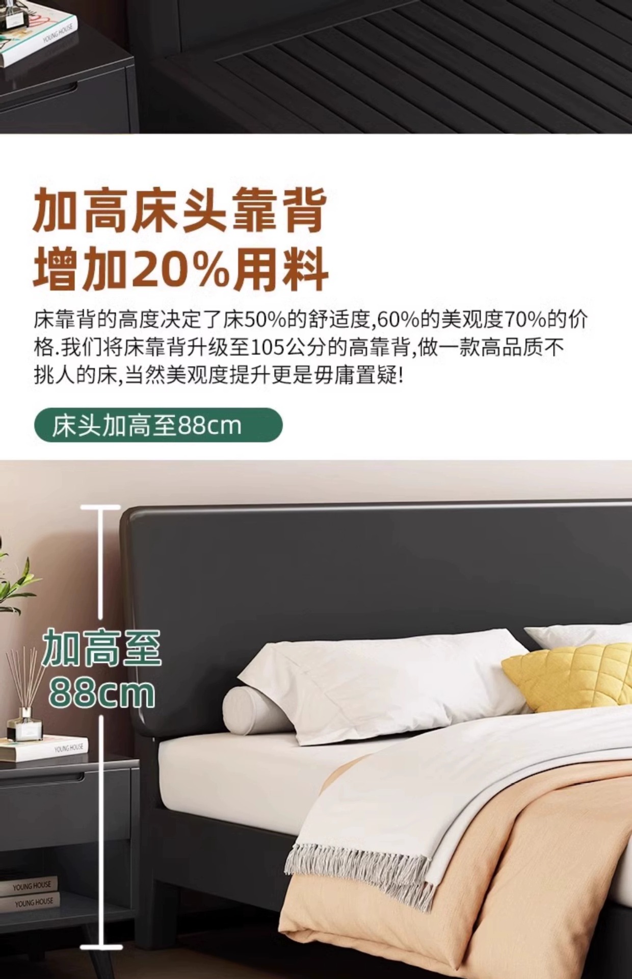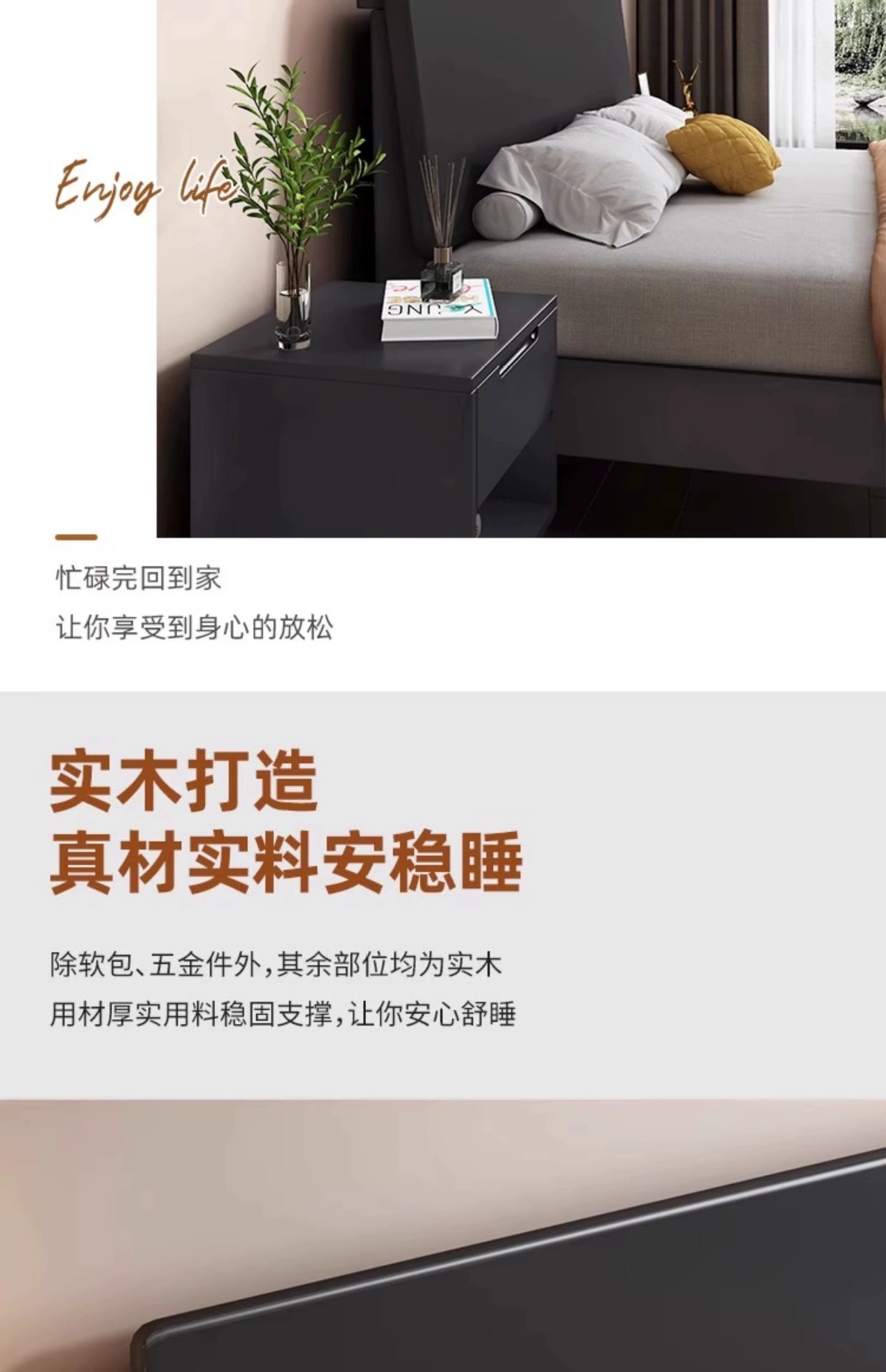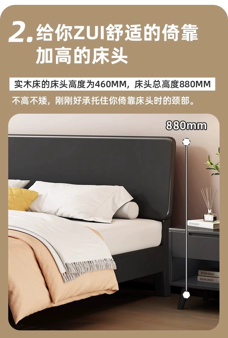 북유럽 단단한 나무 침대 현대 단순 1.8 m 블랙 더블 침대 마스터 침실 1.5 작은 아파트 공주 침대 침실 웨딩 침대스토어 가기
