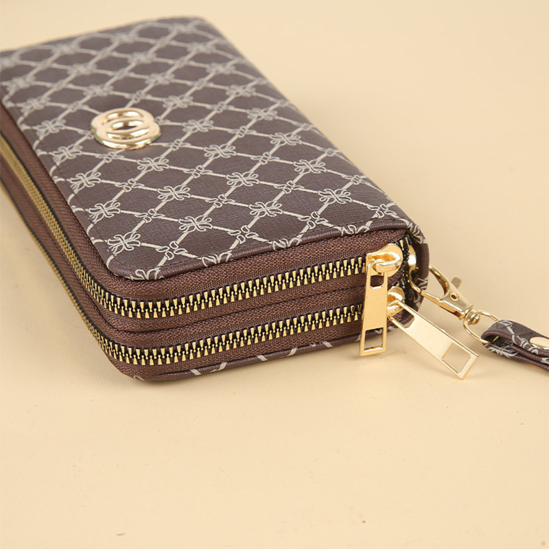 세련된 대용량 여성용 더블 지퍼 클러치 백 다기능 더블 레이어 예쁜 여성 지갑 휴대 전화 가방
