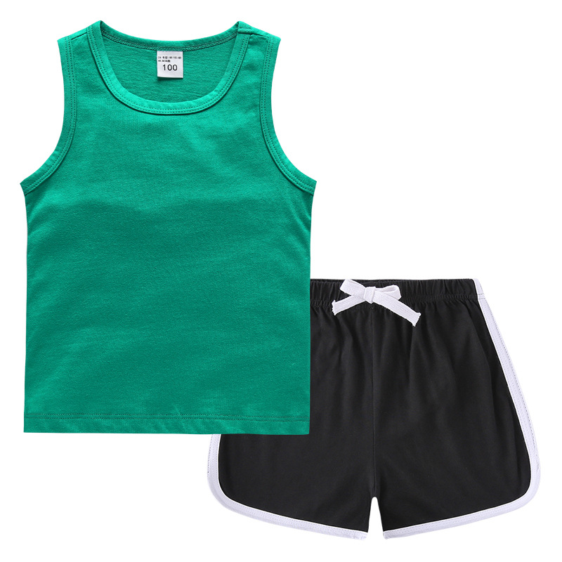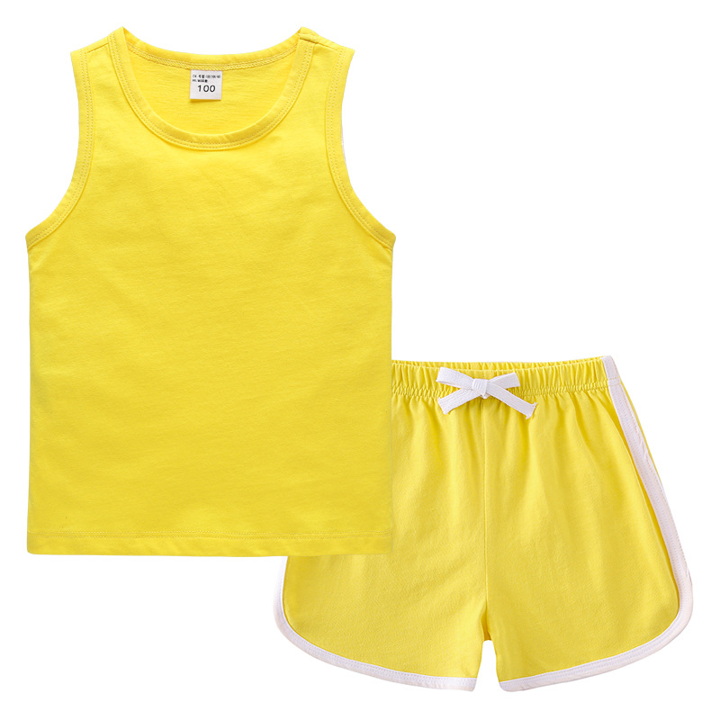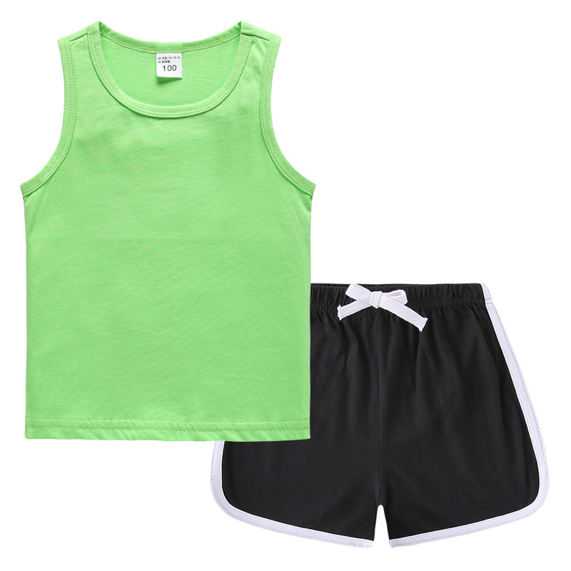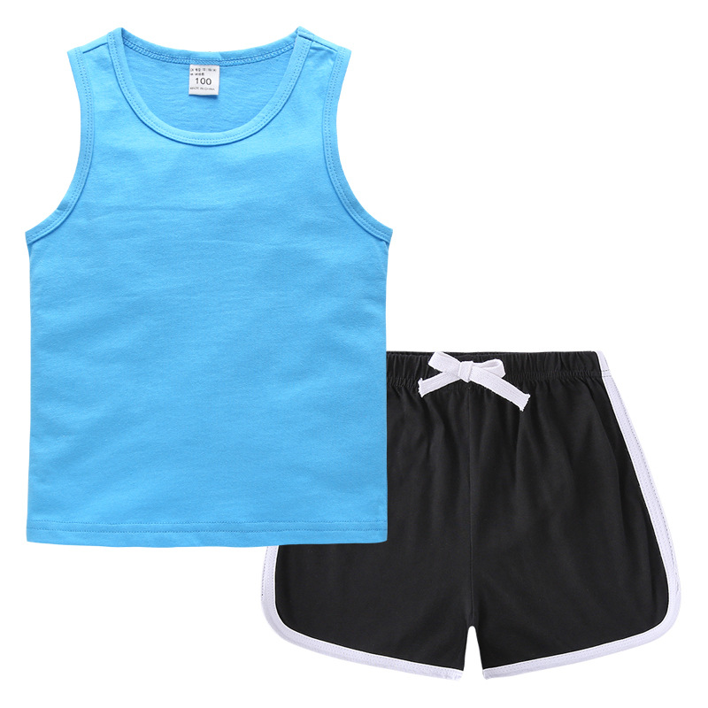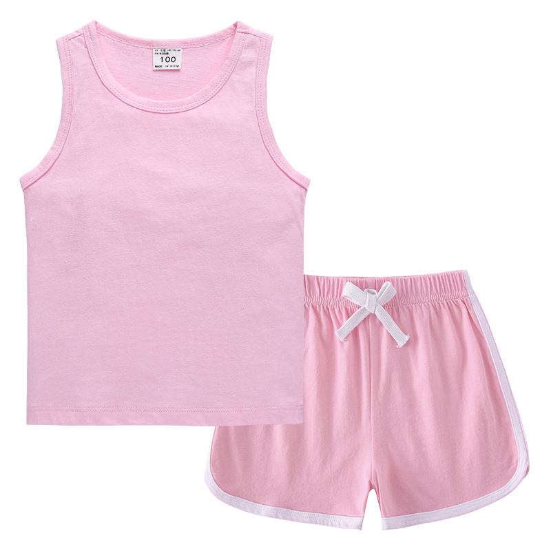 2023 여름 어린이 조끼 핫 팬츠 한국 캐주얼 하의 셔츠 땀 흡수 사탕 어린이 민소매 언더 셔츠 세트
