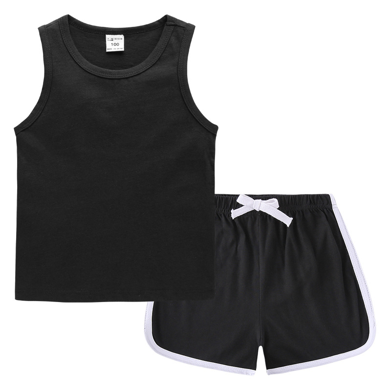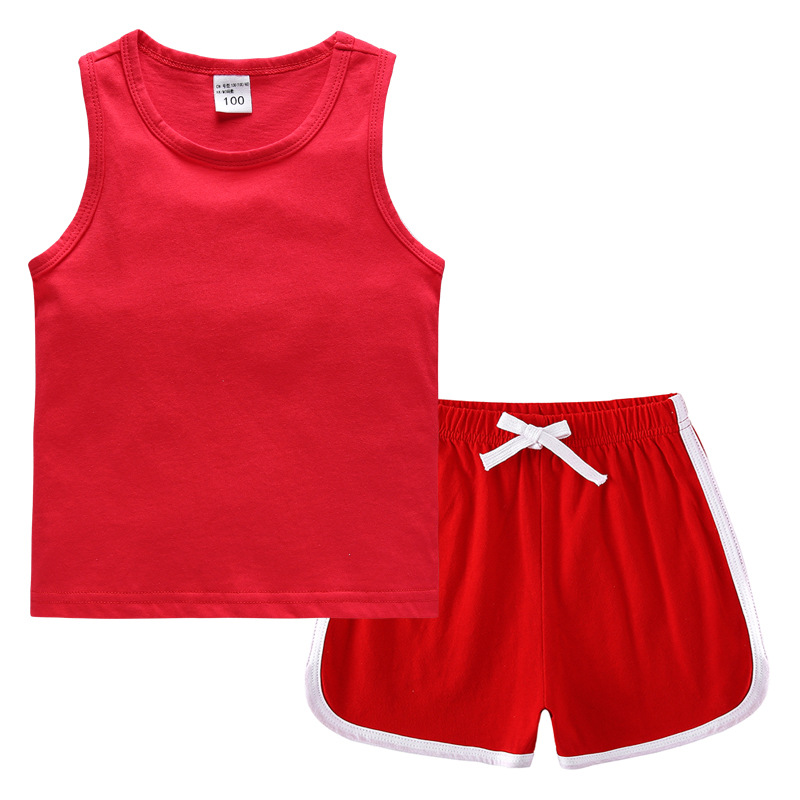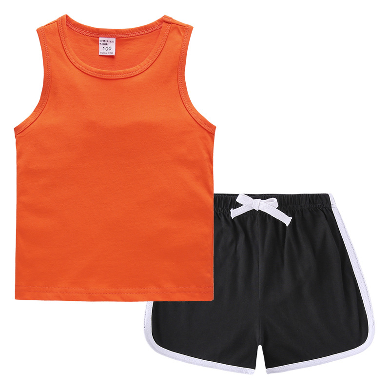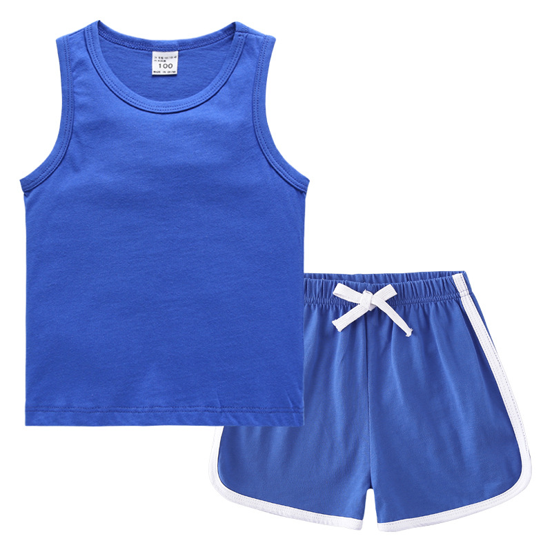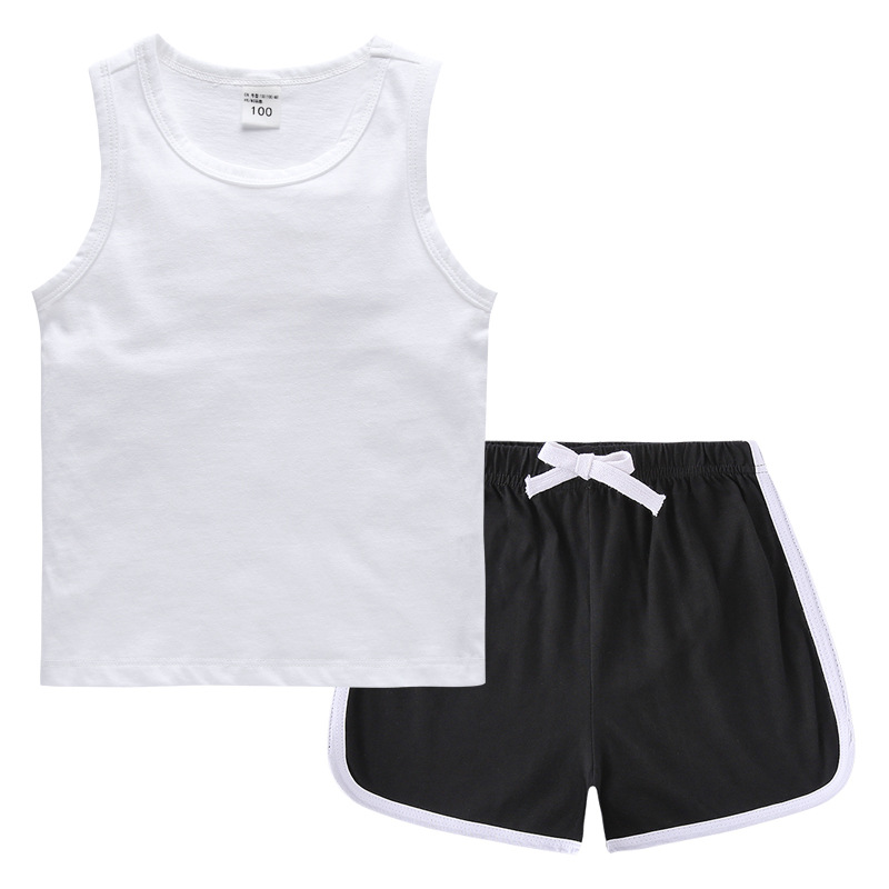 2023 여름 어린이 조끼 핫 팬츠 한국 캐주얼 하의 셔츠 땀 흡수 사탕 어린이 민소매 언더 셔츠 세트