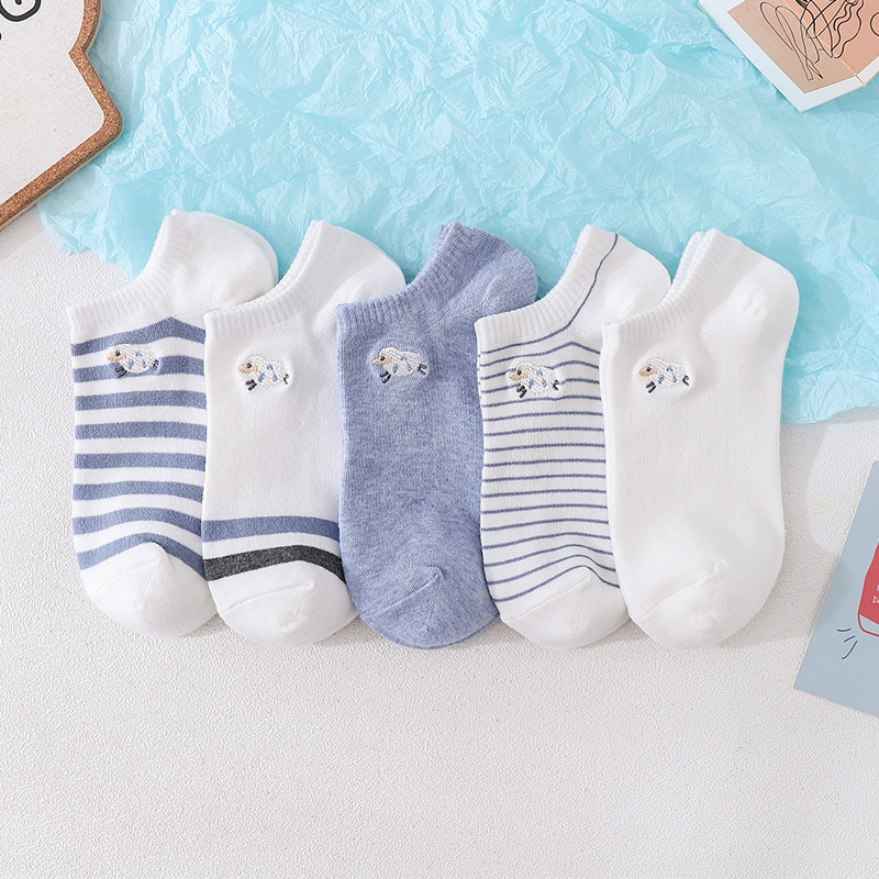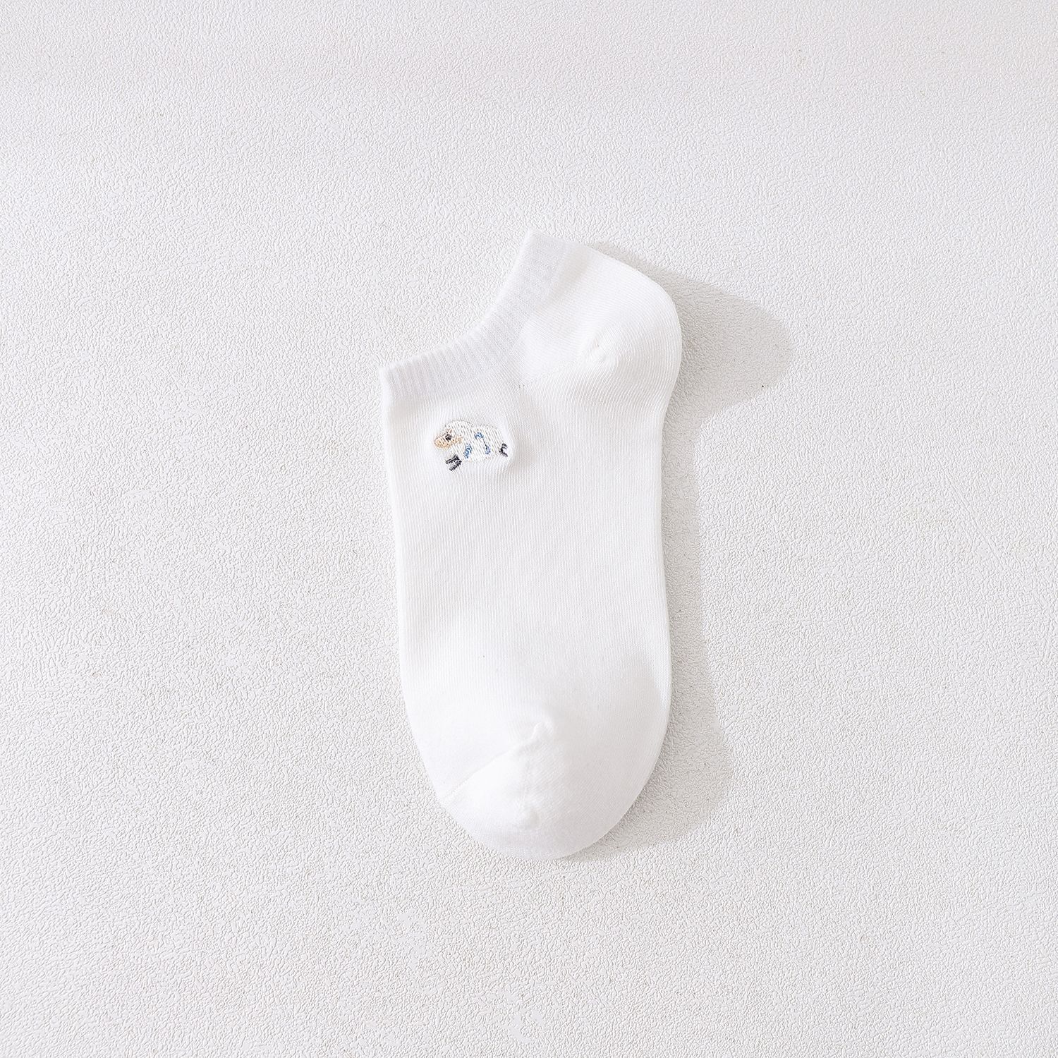 귀여운 양말 여자의 짧은 양말 자수 여름 얇은 유행 보트 여자의 면 얕은 입 한국 일본 스타일 흰색 여자 양말