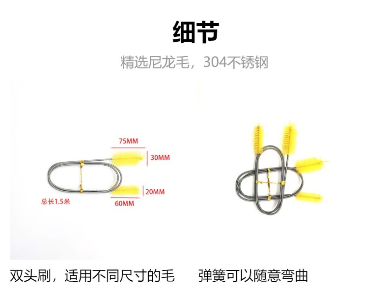 헹다 양두 스테인레스 파이프 청소 스프링 나일론 파이프 청소 브러쉬 어항 필터 수도관 브러시