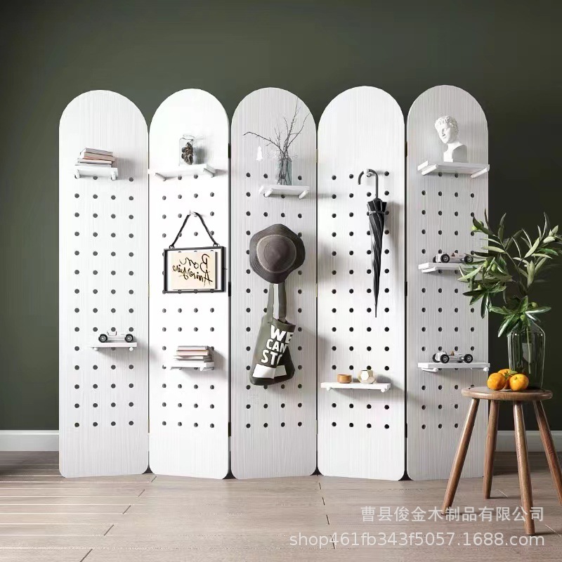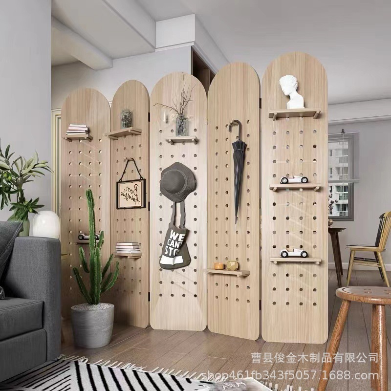 나무 구멍 보드 접이식 스크린 파티션 거실 접이식 모바일 쉼터 반 벽 상품 구멍 보드 파티션 도매스토어 가기
