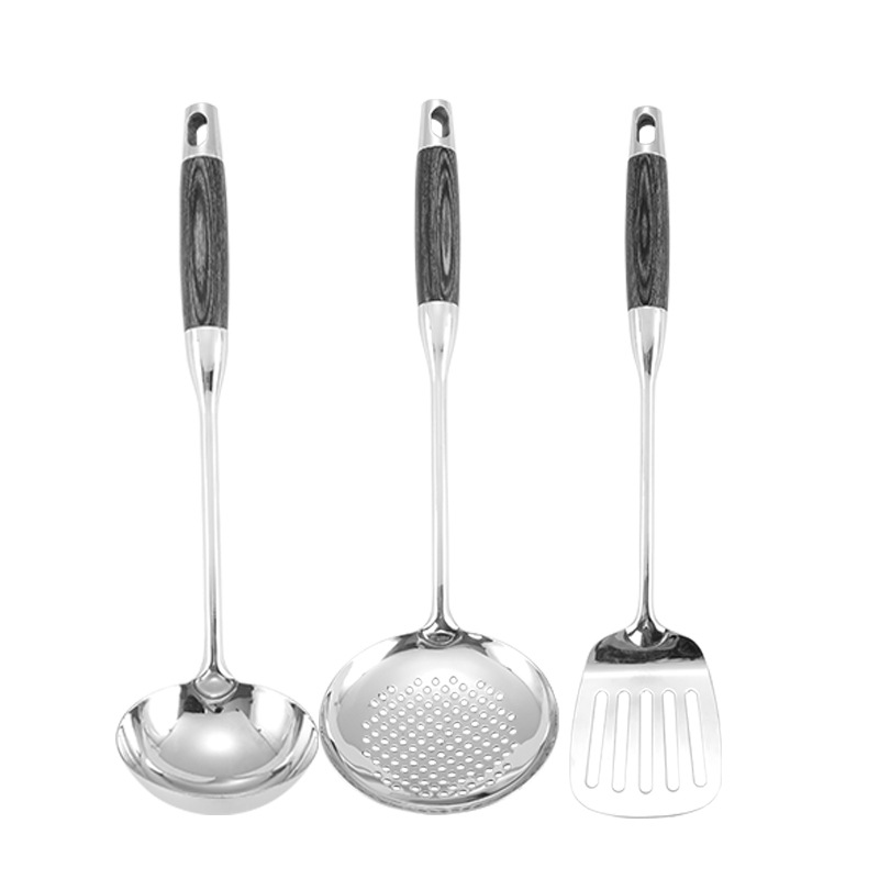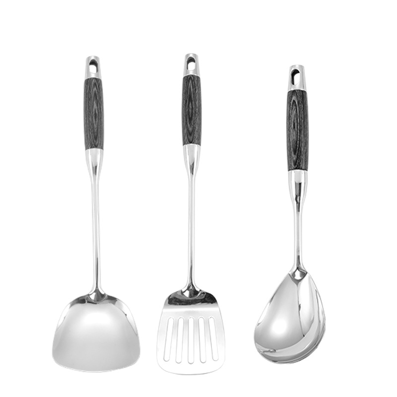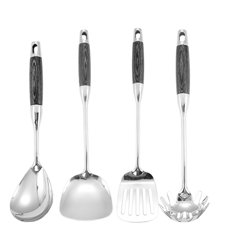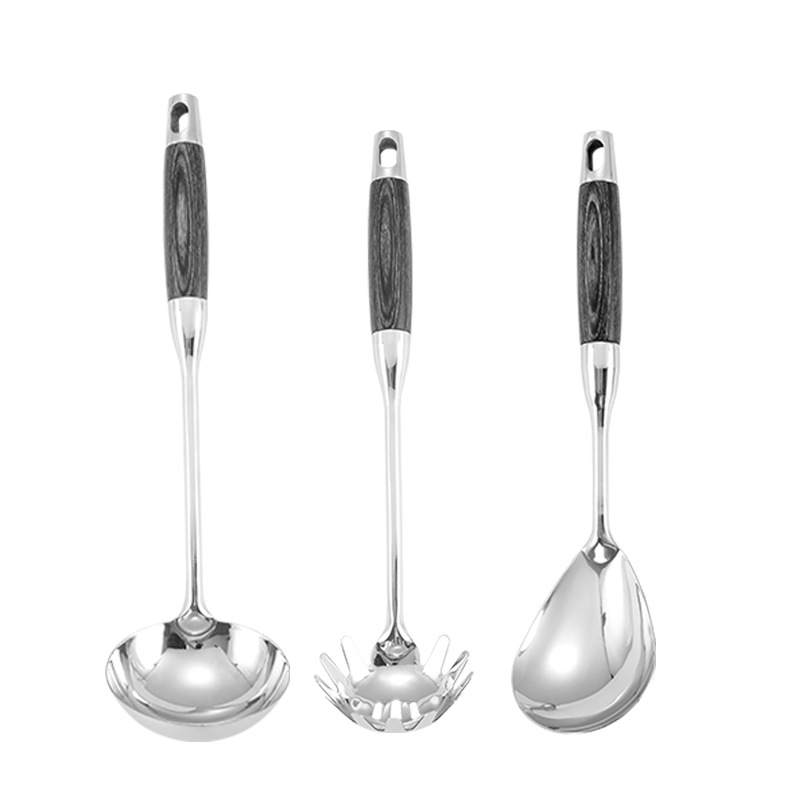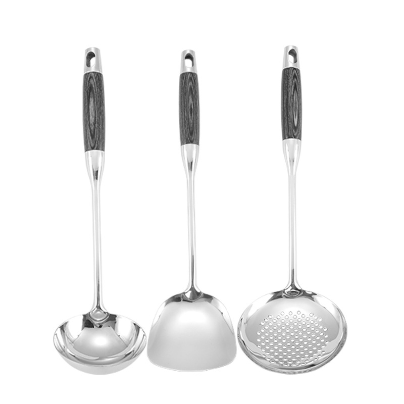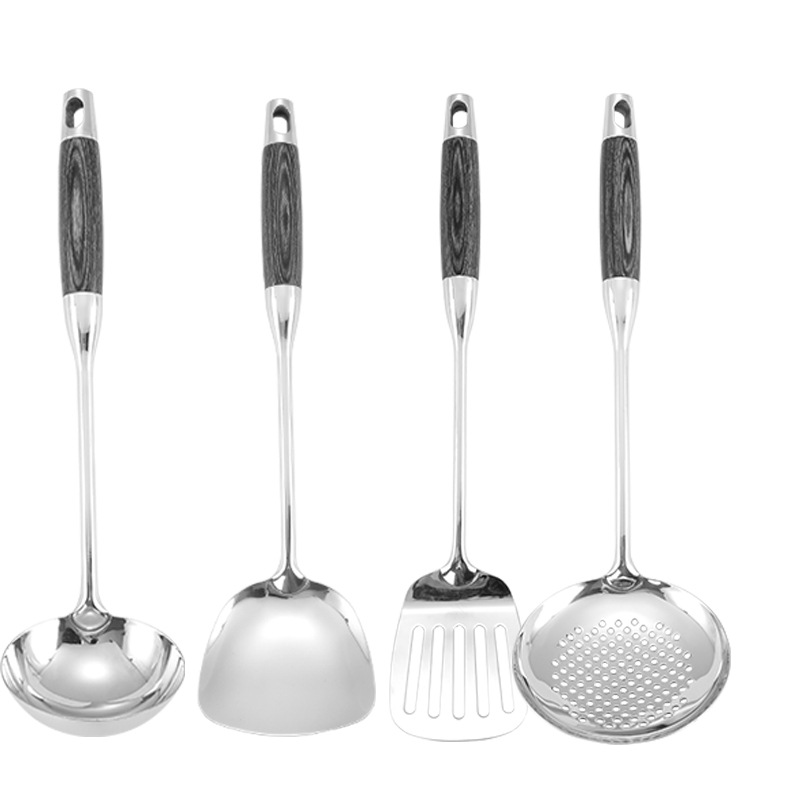 주방 세트 304 스테인레스 나무 손잡이 주걱 수프 스푼 볶음 삽 주방 요리 도구 풀 세트 도매