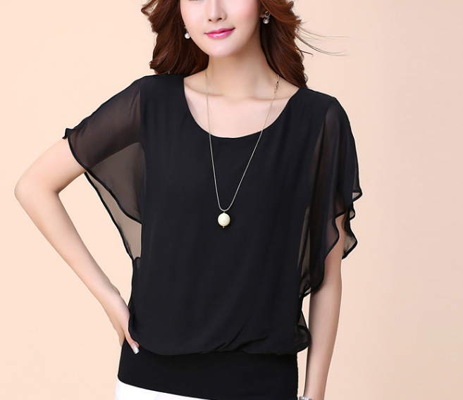 한국 여름 신상 쉬폰 셔츠 여성 반팔 큰 사이즈 여성복 슬리밍 배트 쉬폰 탑 베이스 레이어