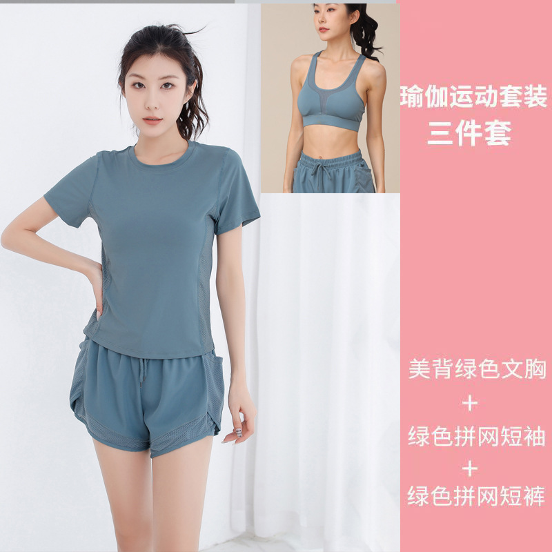 인터넷 연예인 요가 속건 3 피스 세트 여성 패션 요가 야외 피트니스 실행 세트 로고