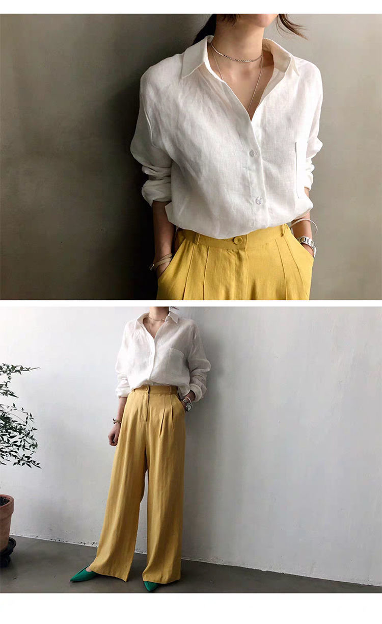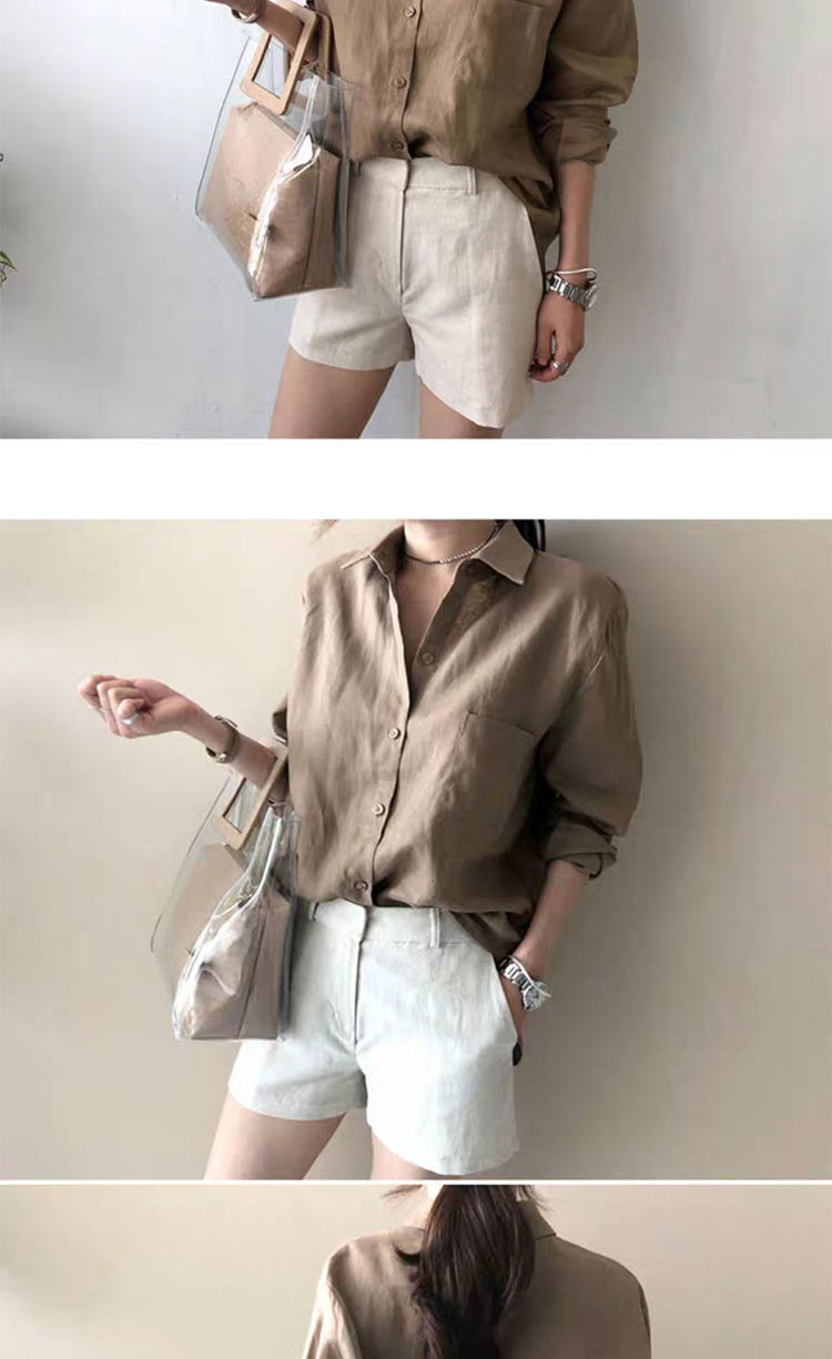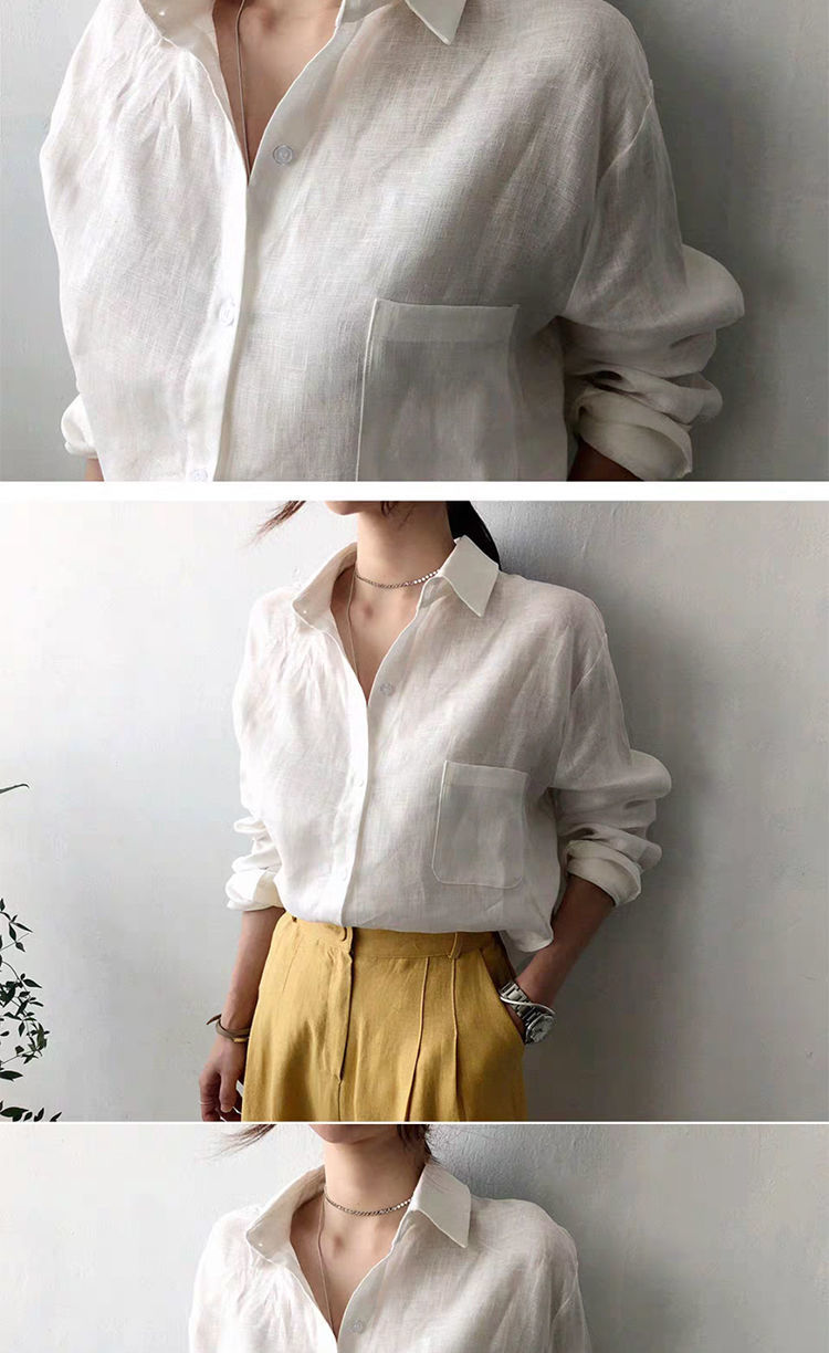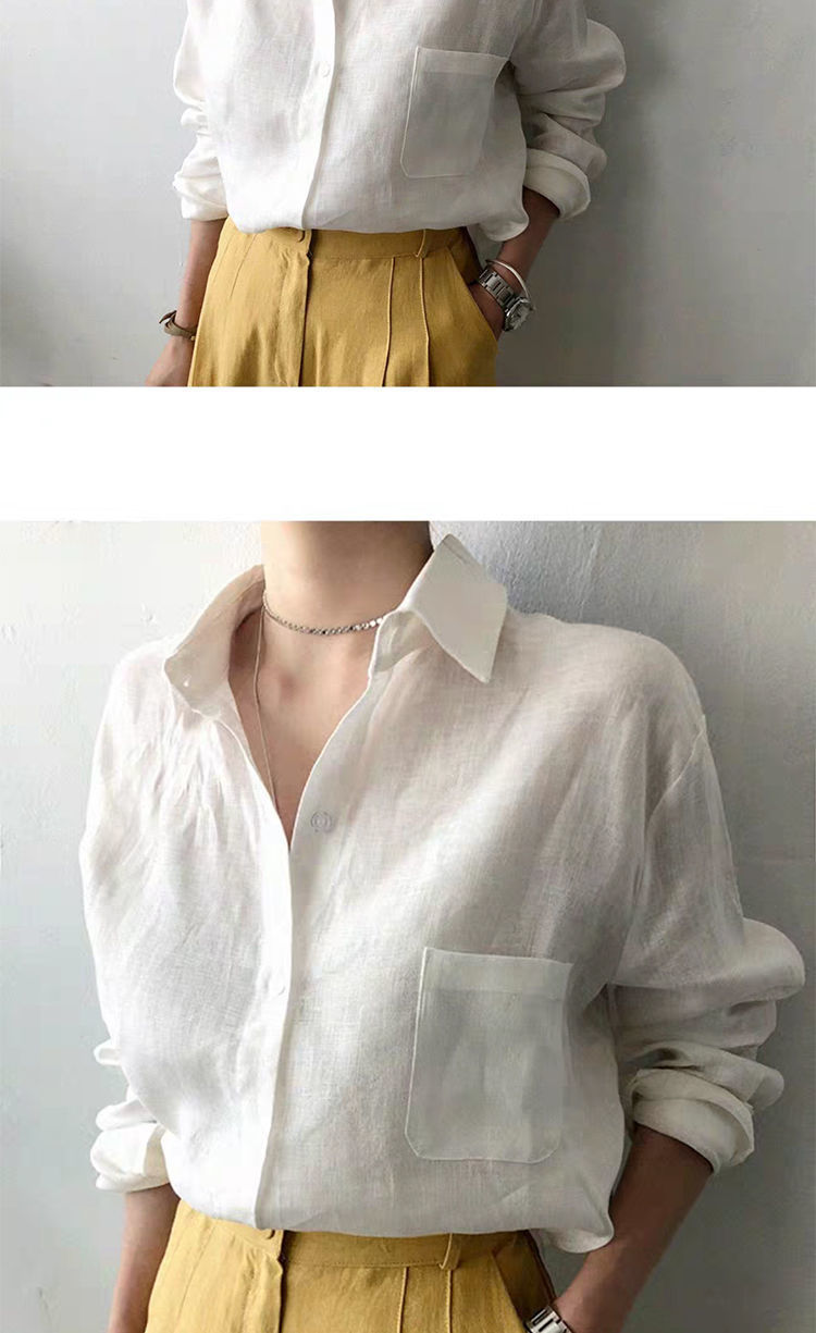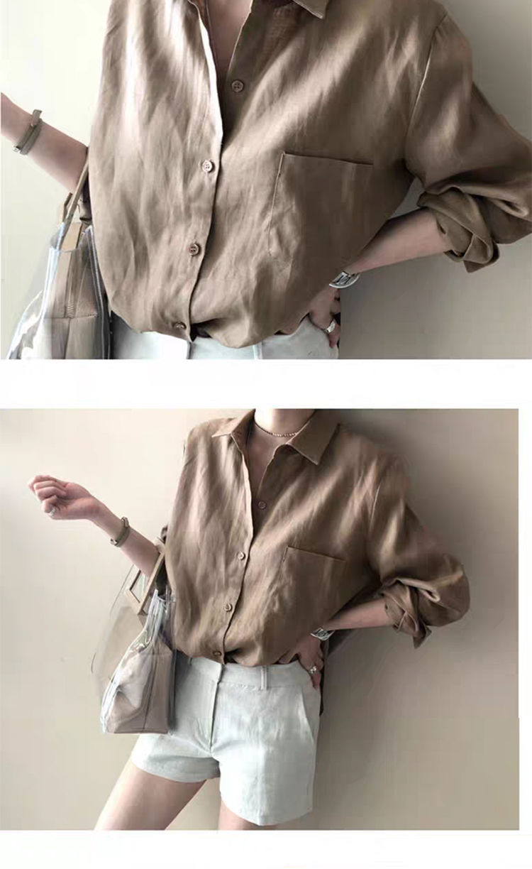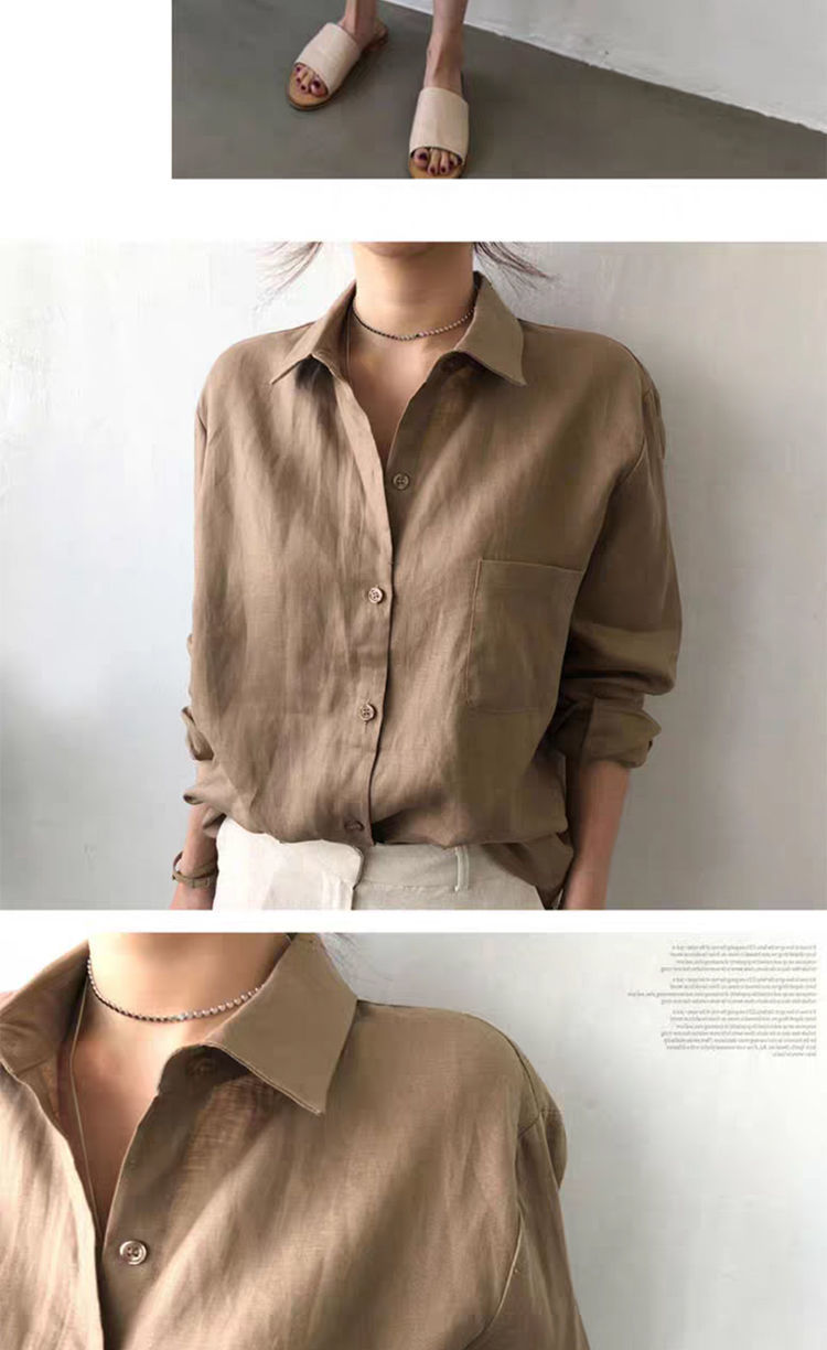 7502 # 봄과 가을 한국식 새로운 홍콩 스타일 루즈하고 다재다능한 캐주얼 셔츠스토어 가기